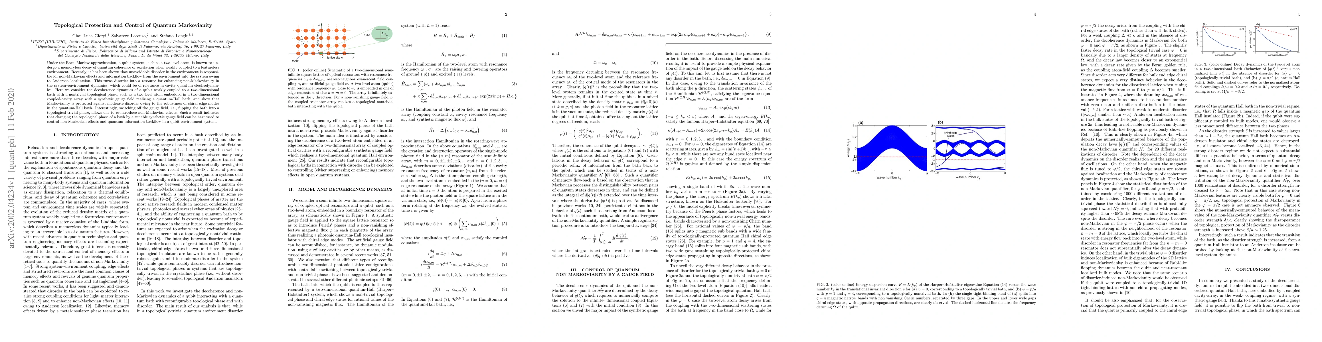 This paper explores how topological protection in a quantum-Hall bath can preserve Markovian dynamics in a qubit system despite moderate disorder, due to the robustness of chiral edge modes. Switching off the synthetic gauge field to revert the bath to a trivial phase reintroduces non-Markovian effects, demonstrating the control of quantum information backflow through the bath's topological phase.