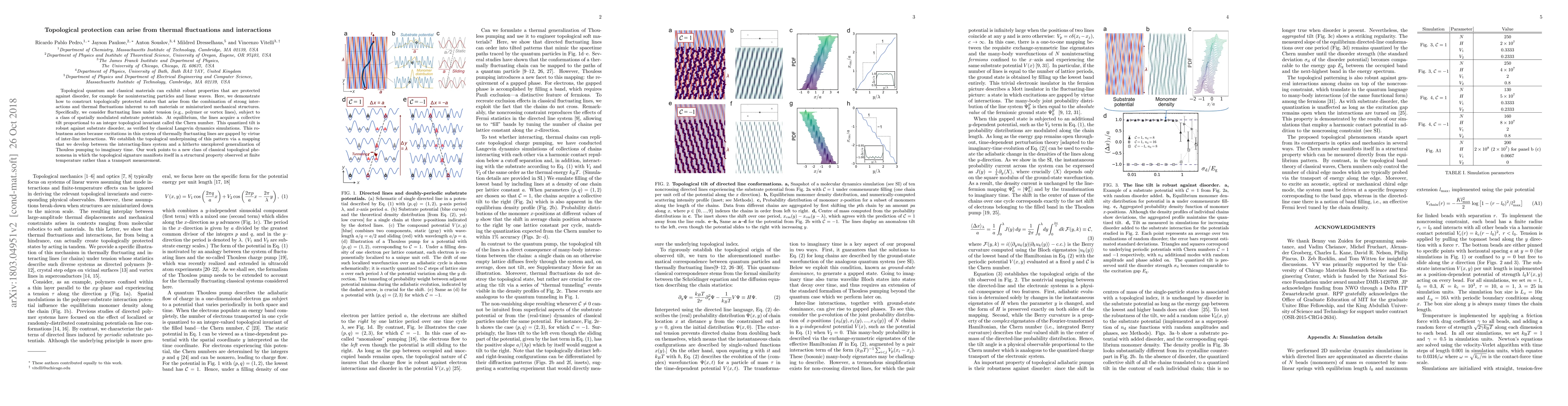 This paper demonstrates that topological protection can emerge from thermal fluctuations and interactions in soft materials or miniaturized mechanical structures, specifically in fluctuating lines under tension. The collective tilt of these lines, governed by an integer topological invariant, remains robust against disorder due to gapped excitations from inter-line interactions.