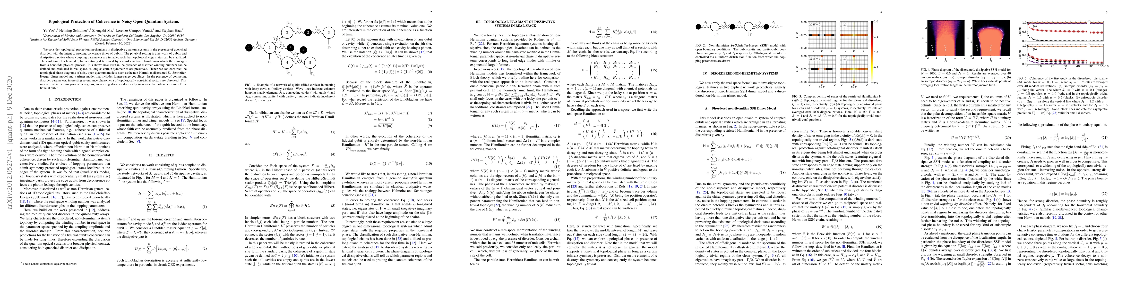 This paper explores topological protection mechanisms in noisy open quantum systems to extend qubit coherence times. It demonstrates how topological edge states can stabilize coherence in networks of qubits and cavities, even under quenched disorder, by defining winding numbers in real space when certain symmetries are preserved.