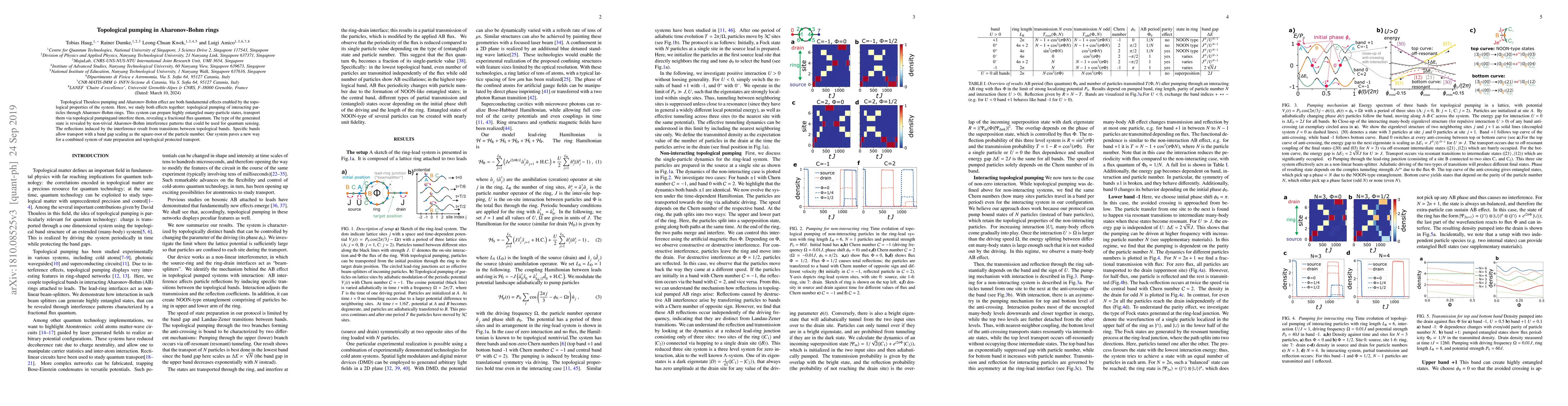 This paper explores the combination of topological Thouless pumping and the Aharonov-Bohm effect in rings, demonstrating the topologically protected transport of interacting particles. The study reveals fractional flux quantum interference patterns, paving the way for potential quantum sensing applications.