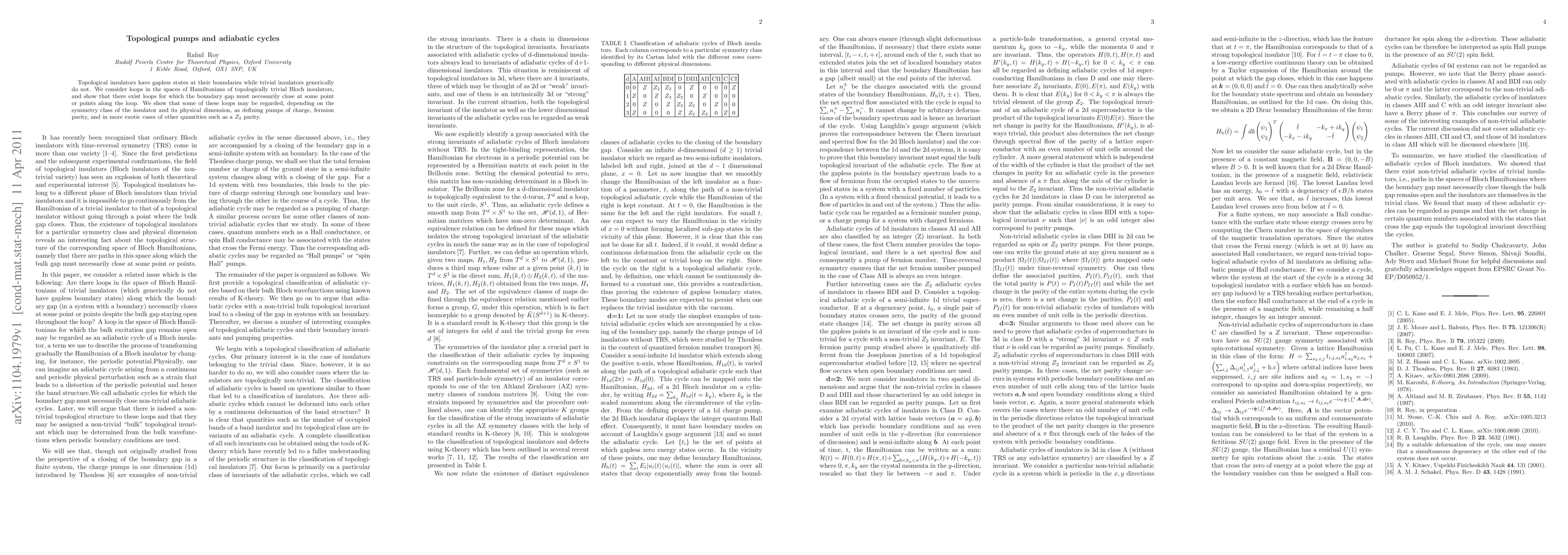 Topological insulators have gapless states at their boundaries while trivial insulators generically do not. We consider loops in the spaces of Hamiltonians of topologically trivial Bloch insulators, and show that there exist loops for which the boundary gap must necessarily close at some point or points along the loop. We show that some of these loops may be regarded, depending on the symmetry class of the insulator and its physical dimension, as defining pumps of charge, fermion parity, and in more exotic cases of other quantities such as a $Z_2$ parity.