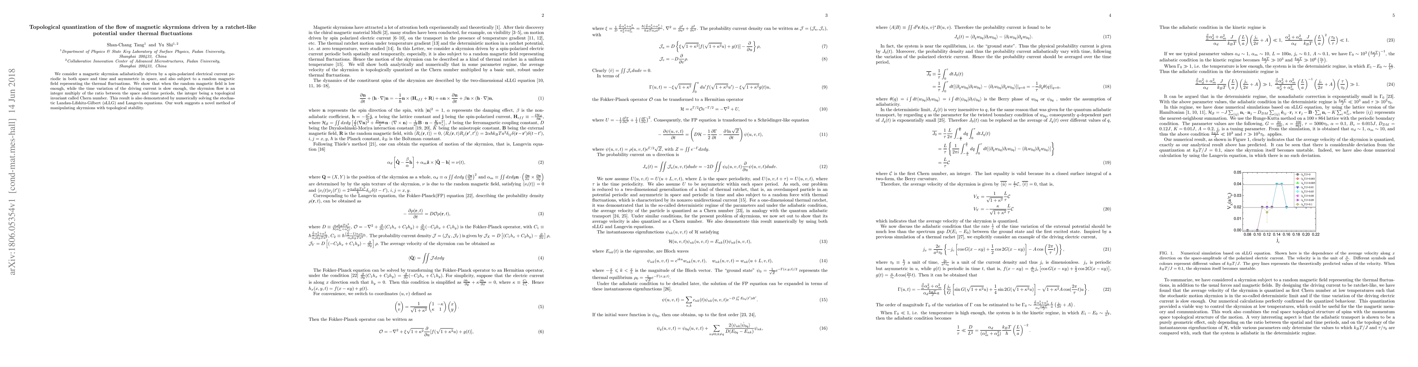 We consider a magnetic skyrmion adiabatically driven by a spin-polarized electrical current periodic in both space and time and asymmetric in space, and also subject to a random magnetic field representing the thermal fluctuations. We show that when the random magnetic field is low enough, while the time variation of the driving current is slow enough, the skyrmion flow is an integer multiply of the ratio between the space and time periods, the integer being a topological invariant called Chern number. This result is also demonstrated by numerically solving the stochastic Landau-Lifshitz-Gilbert (sLLG) and Langevin equations. Our work suggests a novel method of manipulating skyrmions with topological stability.