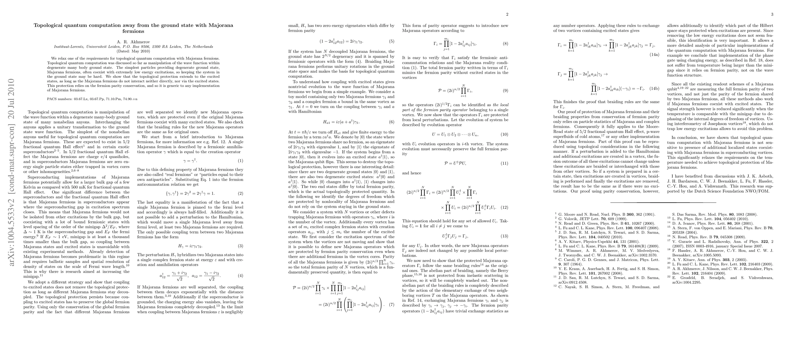 This paper demonstrates that topological quantum computation using Majorana fermions can extend beyond the ground state, preserving topological protection even in excited states, provided there is no interaction between fermions directly or via these states, due to fermion parity conservation. This relaxes constraints on maintaining the system within the ground state.