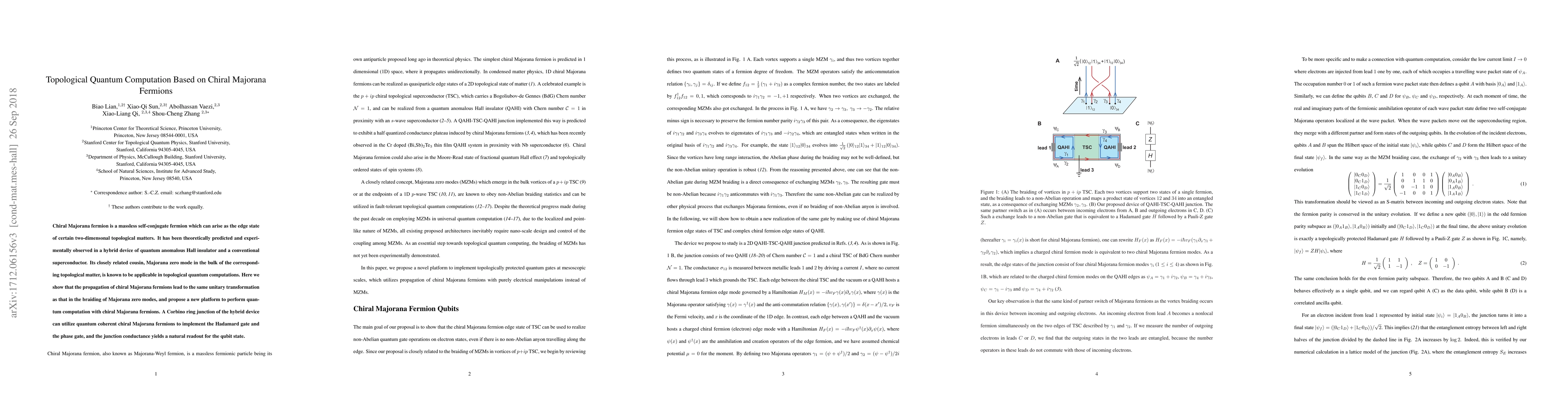 This paper introduces chiral Majorana fermions as a new platform for topological quantum computation, demonstrating that their propagation mimics the unitary transformations achieved through Majorana zero mode braiding. It proposes a Corbino ring junction in a hybrid quantum device to implement quantum gates and offers conductance measurements for qubit state readout.