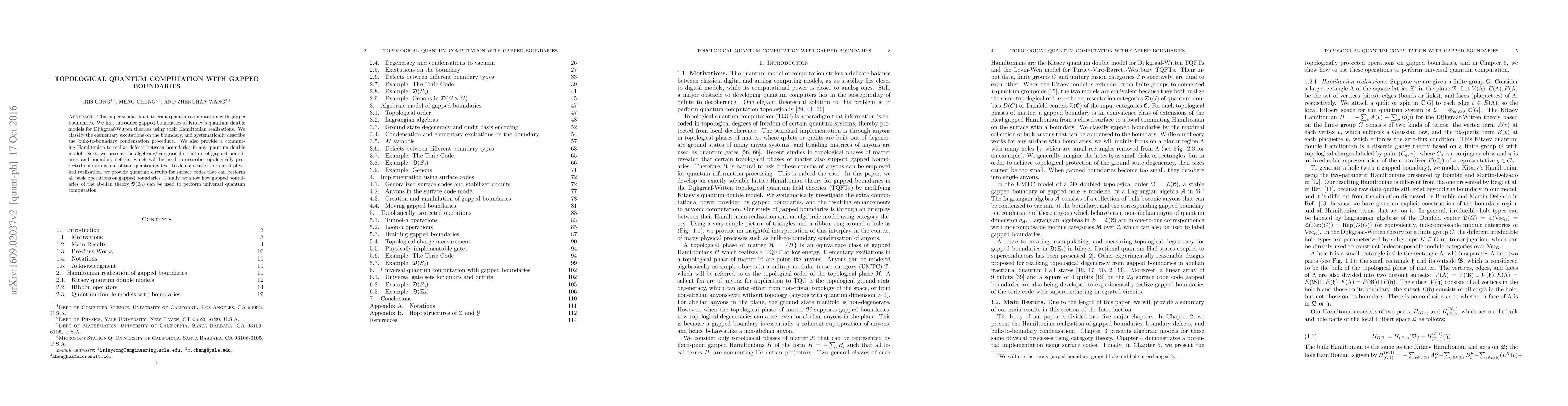 This paper explores fault-tolerant quantum computation using gapped boundaries in Kitaev's quantum double models, providing a framework for topologically protected quantum gates and demonstrating universal quantum computation through surface codes.