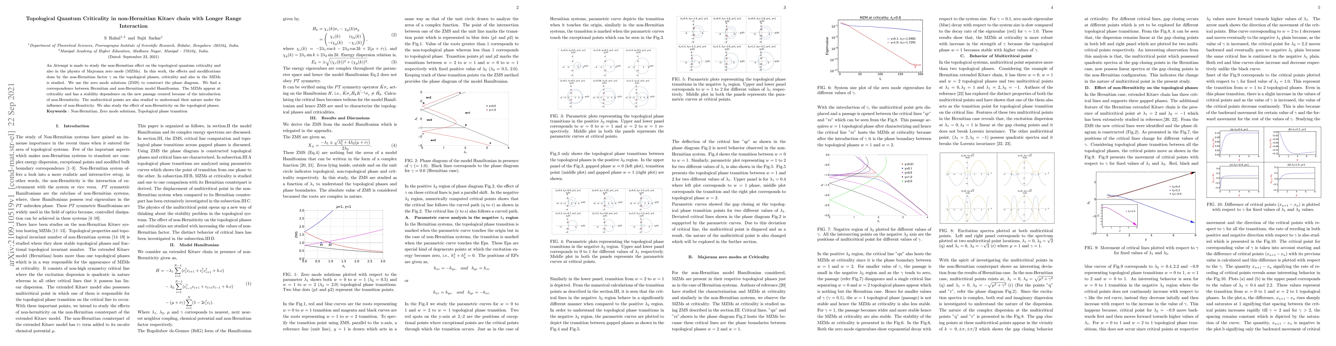 An Attempt is made to study the non-Hermitian effect on the topological quantum criticality and also in the physics of Majroana zero mode (MZMs). In this work, the effects and modifications done by the non-Hermitian factor $\gamma$ on the topological phases, criticality and also in the MZMs is studied. We use the zero mode solutions (ZMS) to construct the phase diagram. We find a correspondence between Hermitian and non-Hermitian model Hamiltonian. The MZMs appear at criticality and has a stability dependence on the new passage created because of the introduction of non-Hermiticity. The multicritical points are also studied to understand their nature under the influence of non-Hemiticity. We also study the effect of non-Hermiticity on the topological phases.