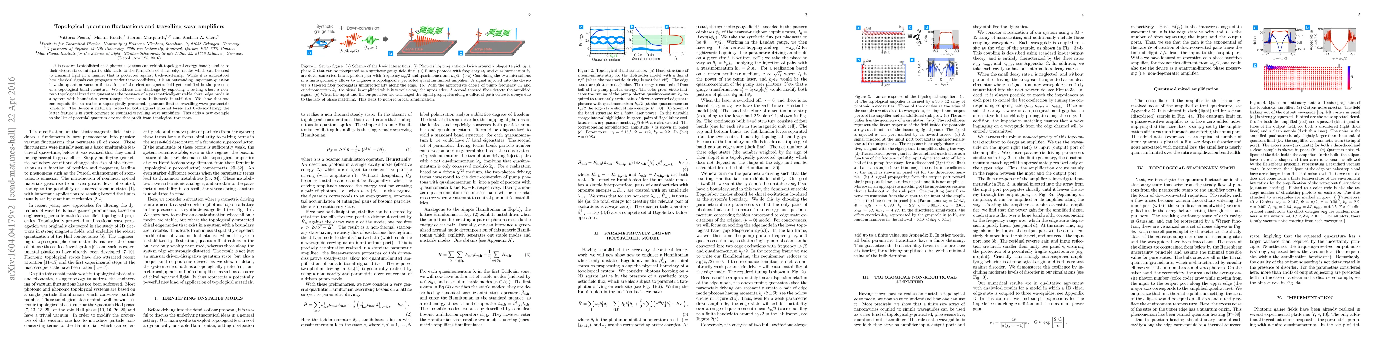 This paper investigates how topological photonic systems can protect quantum vacuum fluctuations, demonstrating a topologically protected, quantum-limited travelling-wave parametric amplifier. The device benefits from topological protection against internal losses and back-scattering, offering a new quantum device leveraging topological transport.