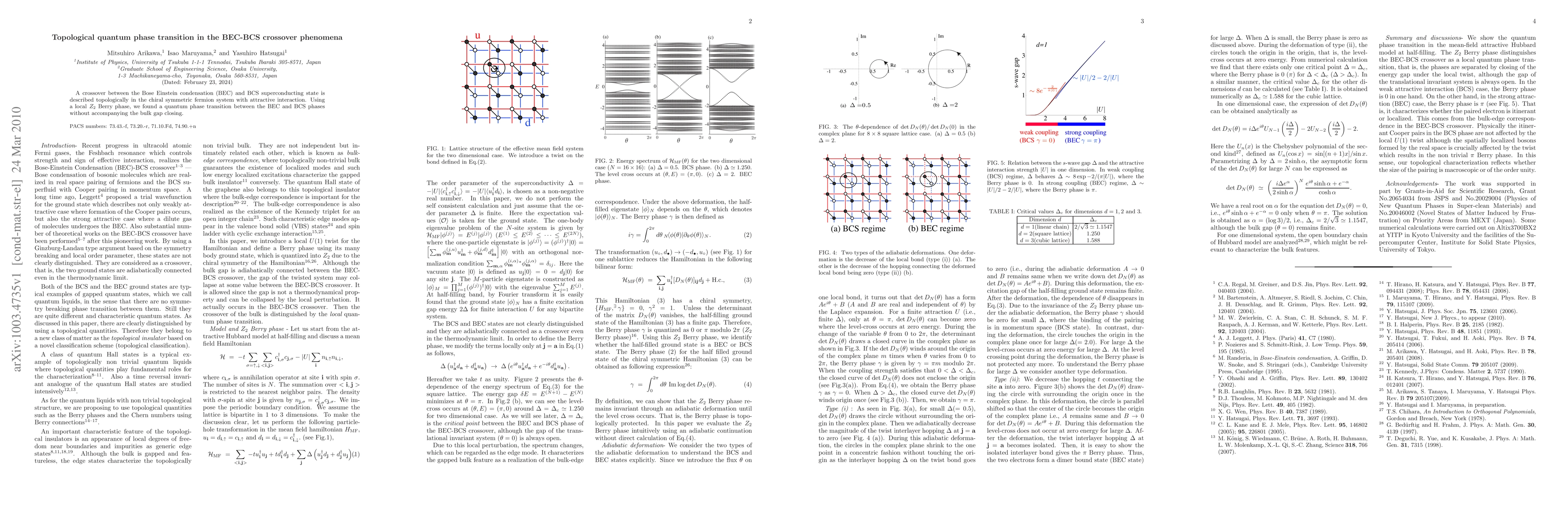 Summary: This study topologically analyzes the BEC-BCS crossover in chiral symmetric fermions, revealing a quantum phase transition via a local Z_2 Berry phase without bulk gap closure. The findings highlight a unique topological transition in the system.