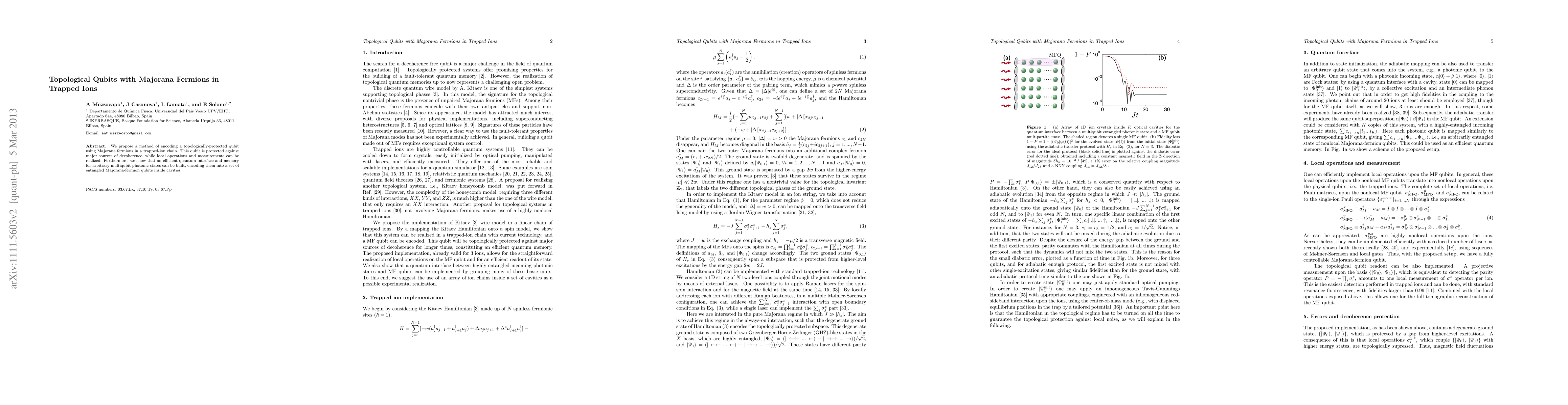 We propose a method of encoding a topologically-protected qubit using Majorana fermions in a trapped-ion chain. This qubit is protected against major sources of decoherence, while local operations and measurements can be realized. Furthermore, we show that an efficient quantum interface and memory for arbitrary multiqubit photonic states can be built, encoding them into a set of entangled Majorana-fermion qubits inside cavities.