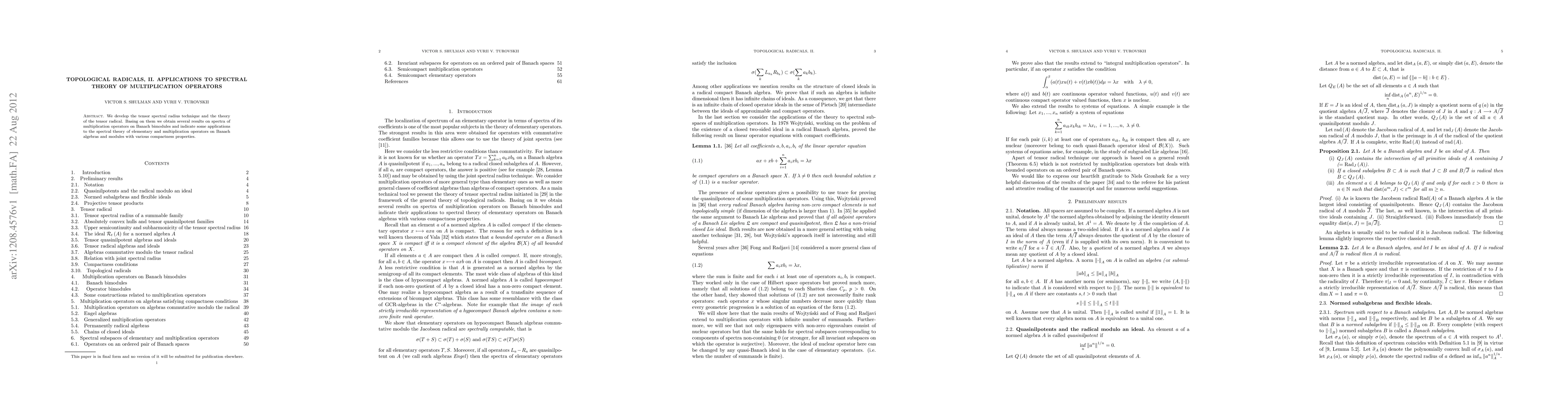 Summary: This paper develops the spectral radius technique and tensor radical theory, applying these advancements to derive significant results regarding the spectral properties of multiplication operators in Banach algebras and operator bimodules.