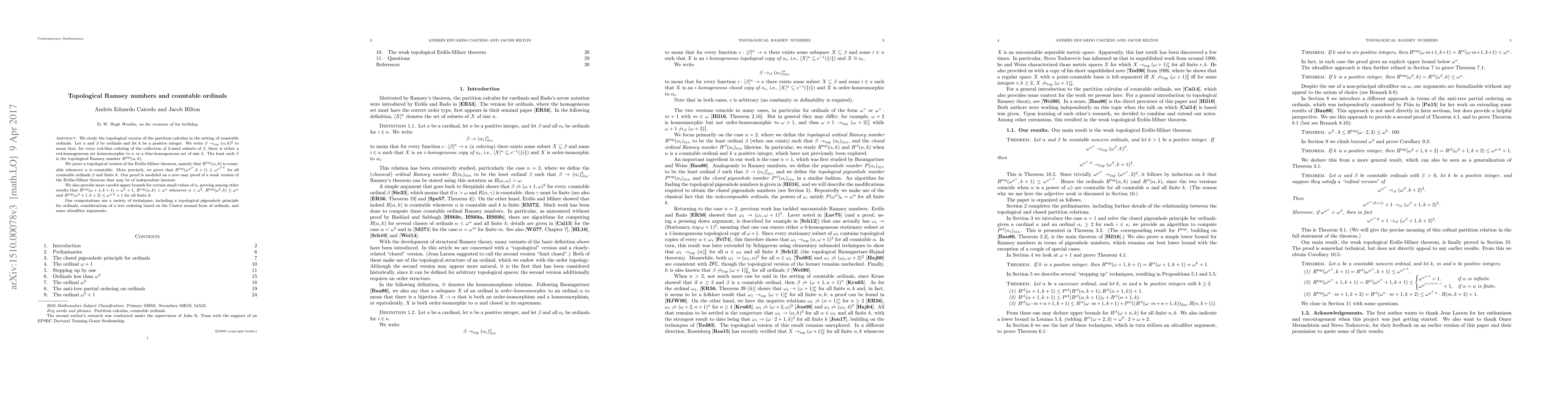 This paper investigates topological Ramsey numbers within countable ordinals, proving that these numbers are countable whenever the base ordinal is countable. It also provides specific upper bounds for small values of the base ordinal, employing techniques like a topological pigeonhole principle and ultrafilter arguments.