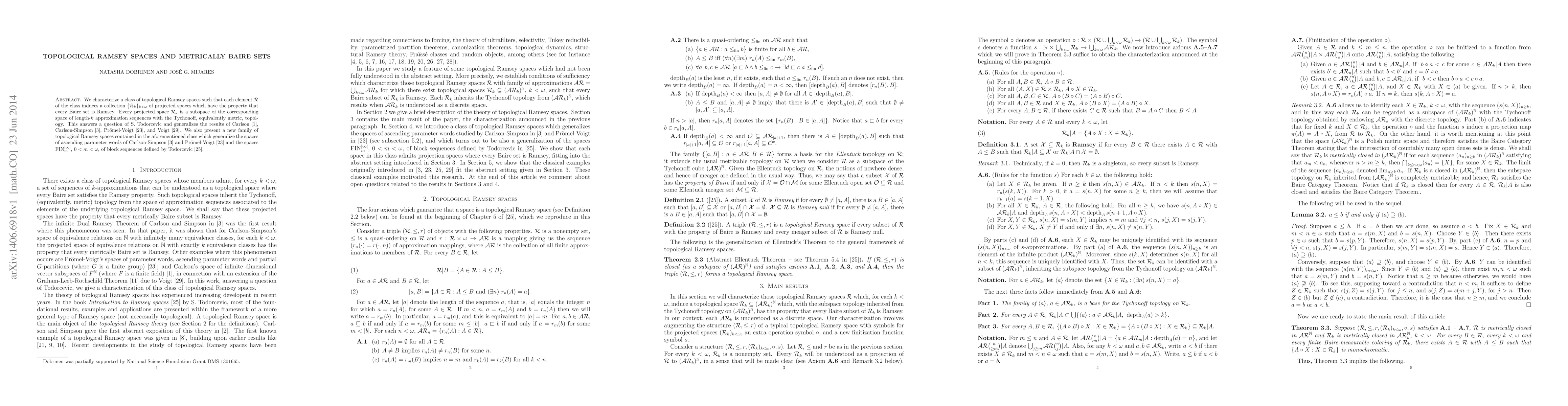 projected spaces which have the property that every Baire set is Ramsey. Every