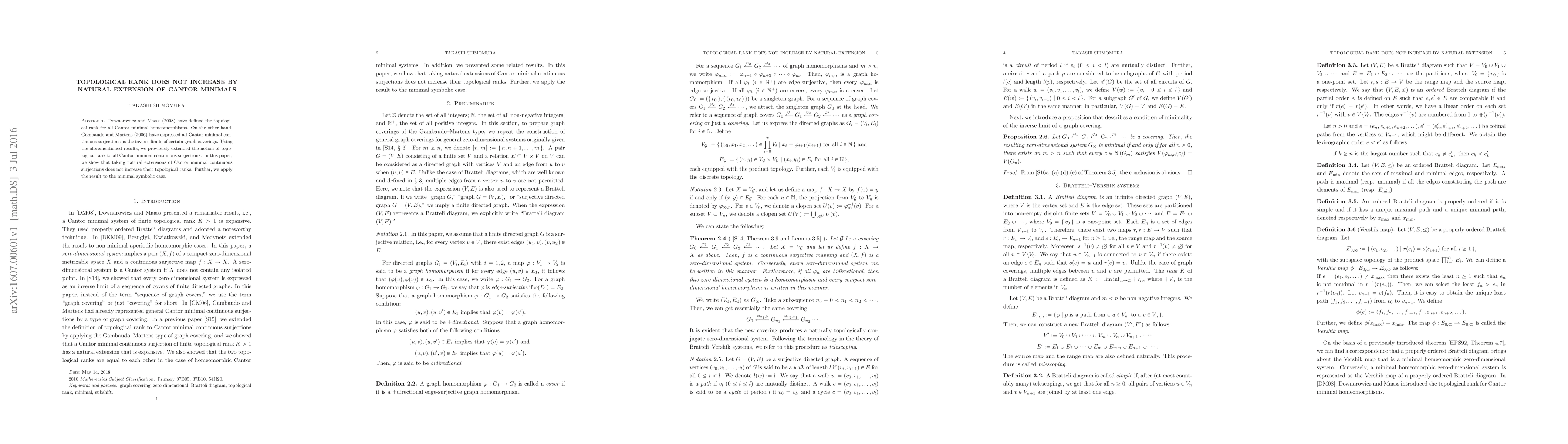 This paper demonstrates that the topological rank of Cantor minimal continuous surjections remains unchanged when taking their natural extensions, thereby extending previous results on topological rank definitions. The authors apply this finding to the minimal symbolic case, showing no increase in topological rank under natural extension.