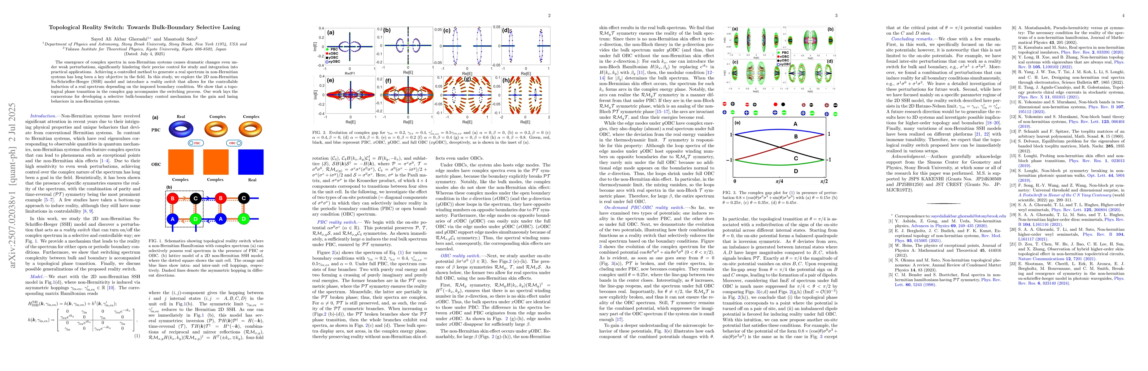 This research introduces a 'Topological Reality Switch' for the 2D non-Hermitian Su-Schrieffer-Heeger (SSH) model, enabling controlled induction of a real spectrum via boundary conditions. It paves the way for selective bulk-boundary control of gain and lasing behaviors in non-Hermitian systems, addressing challenges in their precise control for practical applications.