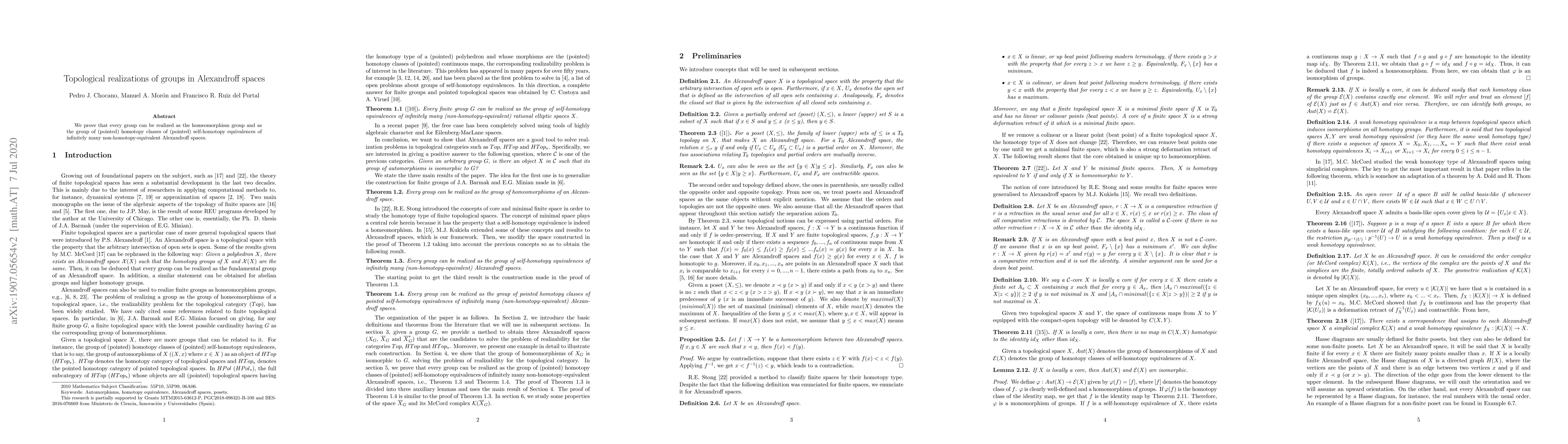 Summary: The paper demonstrates that every group can be represented as the homeomorphism group and as the group of pointed homotopy classes of self-homotopy equivalences in infinitely many distinct Alexandroff spaces. This provides a versatile topological framework for realizing abstract groups.