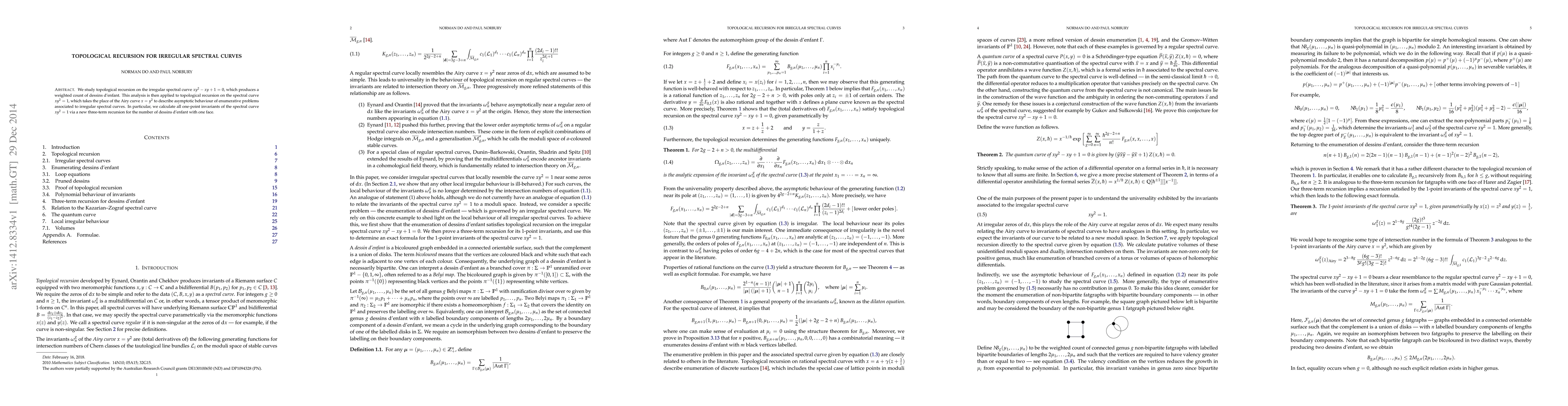This paper explores topological recursion on irregular spectral curves, specifically $xy^2-xy+1=0$, and extends the analysis to $xy^2=1$ to study enumerative problems. It calculates one-point invariants using a novel three-term recursion for dessins d'enfant with one face.