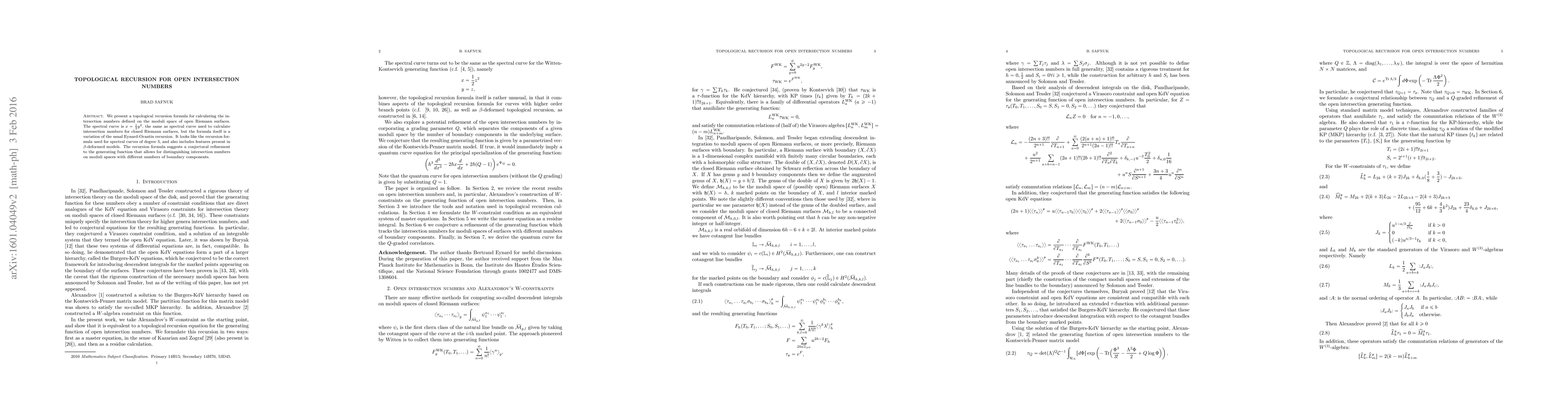 This paper introduces a modified topological recursion formula for computing intersection numbers on moduli spaces of open Riemann surfaces, using a spectral curve similar to that for closed surfaces but adapted for open structures. The proposed formula also incorporates elements from $\beta$-deformed models, suggesting a potential refinement to the generating function for distinguishing intersection numbers based on boundary components.