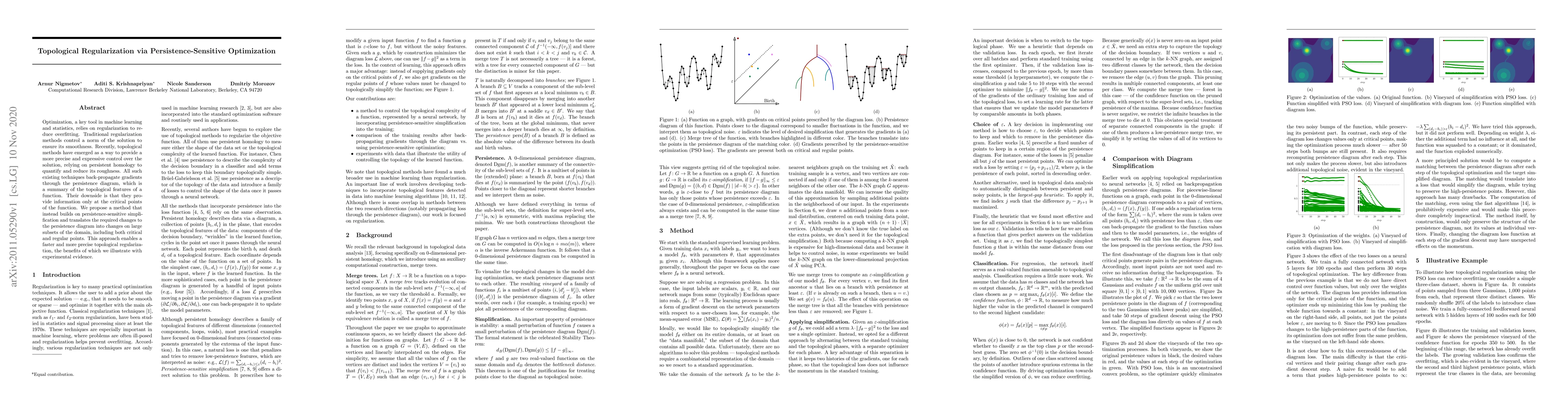 Optimization, a key tool in machine learning and statistics, relies on regularization to reduce overfitting. Traditional regularization methods control a norm of the solution to ensure its smoothness. Recently, topological methods have emerged as a way to provide a more precise and expressive control over the solution, relying on persistent homology to quantify and reduce its roughness. All such existing techniques back-propagate gradients through the persistence diagram, which is a summary of the topological features of a function. Their downside is that they provide information only at the critical points of the function. We propose a method that instead builds on persistence-sensitive simplification and translates the required changes to the persistence diagram into changes on large subsets of the domain, including both critical and regular points. This approach enables a faster and more precise topological regularization, the benefits of which we illustrate with experimental evidence.