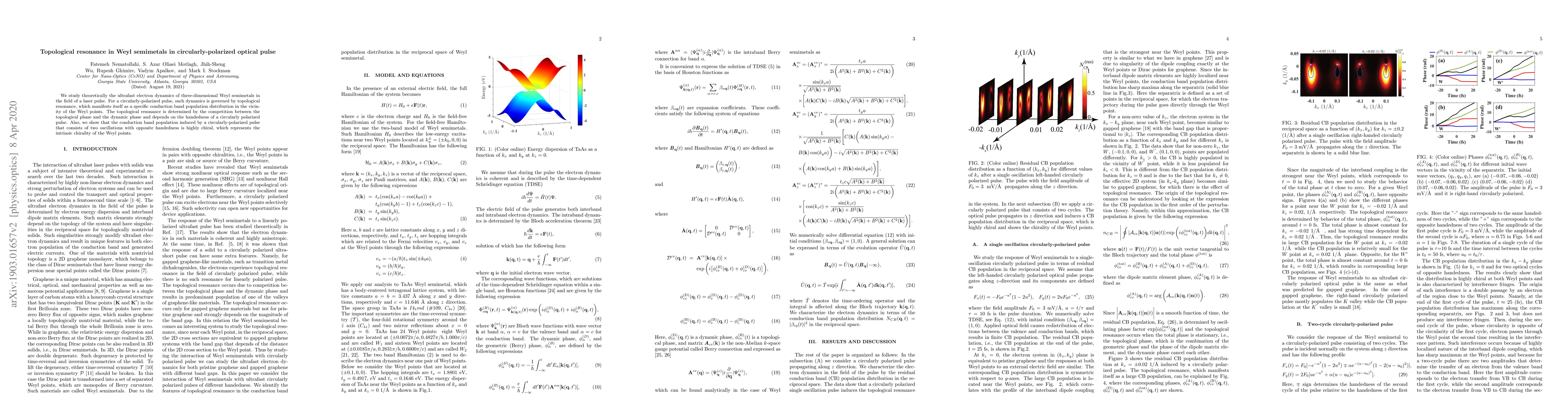This paper investigates the ultrafast electron dynamics in Weyl semimetals under circularly-polarized laser pulses, revealing topological resonance effects that create specific conduction band population distributions near Weyl points. The resonance depends on the pulse's handedness and demonstrates intrinsic chirality when pulses with opposite handedness are used.