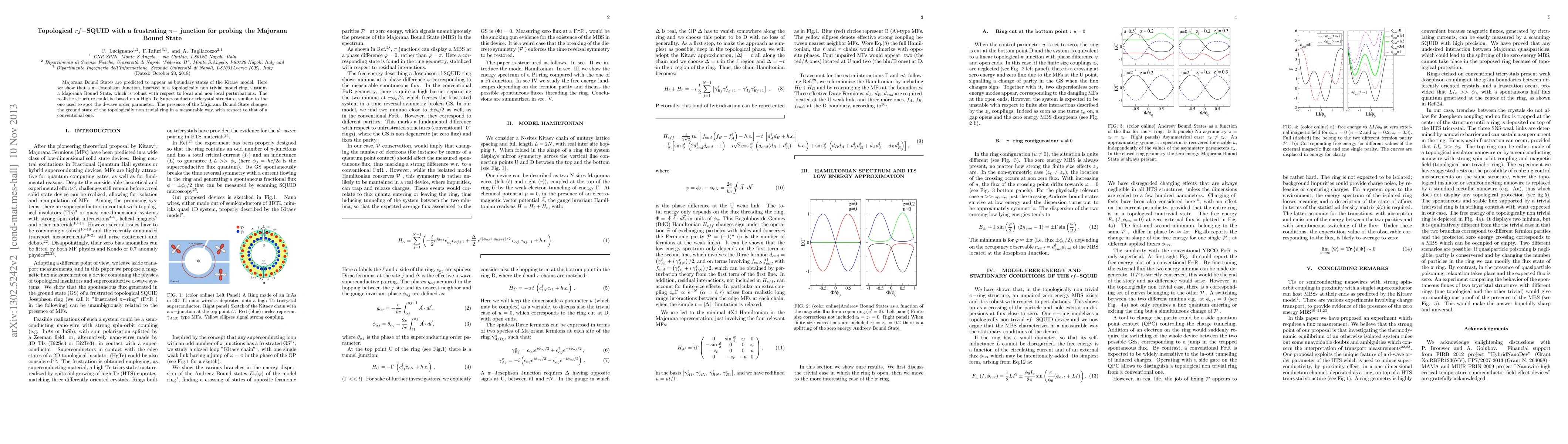 Majorana Bound States are predicted to appear as boundary states of the Kitaev model. Here we show that a pi-Josephson Junction, inserted in a topologically non trivial model ring, sustains a Majorana Bound State, which is robust with respect to local and non local perturbations. The realistic structure could be based on a High Tc Superconductor tricrystal structure, similar to the one used to spot the d-wave order parameter. The presence of the Majorana Bound State changes the ground state of the topologically non trivial ring in a measurable way, with respect to that of a conventional one.