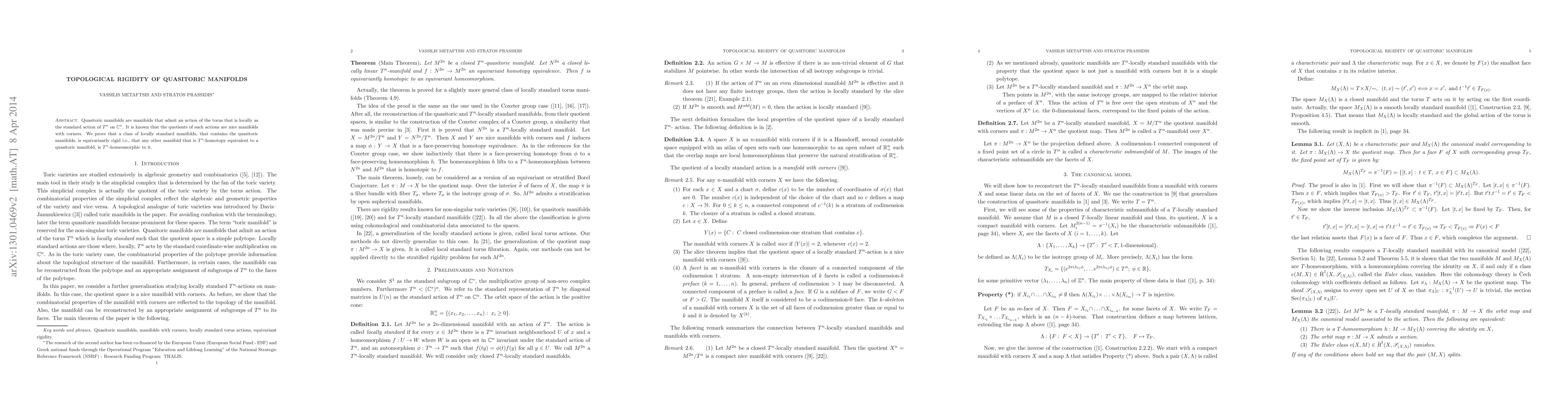 Summary: This paper proves that quasitoric manifolds are equivariantly rigid, meaning any T^n-homotopy equivalent manifold is T^n-homeomorphic to a quasitoric manifold, establishing their topological uniqueness under T^n actions.