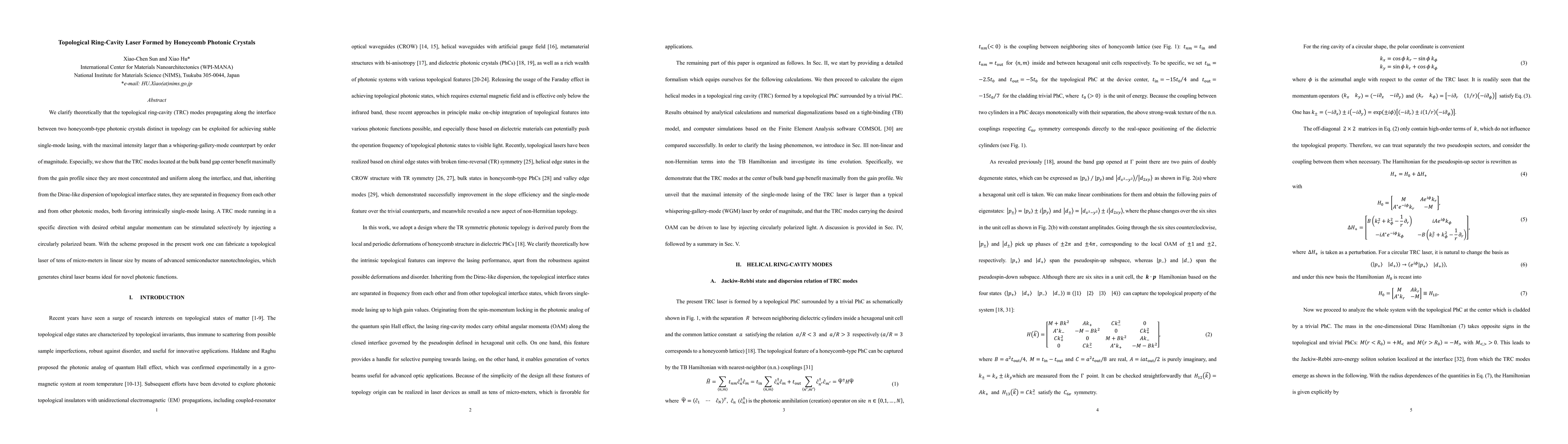 This research proposes a topological ring-cavity laser utilizing honeycomb photonic crystals, demonstrating stable single-mode lasing with significantly enhanced intensity compared to traditional whispering-gallery modes. The design leverages topological interface states for frequency separation and selective stimulation of desired modes via circularly polarized light.