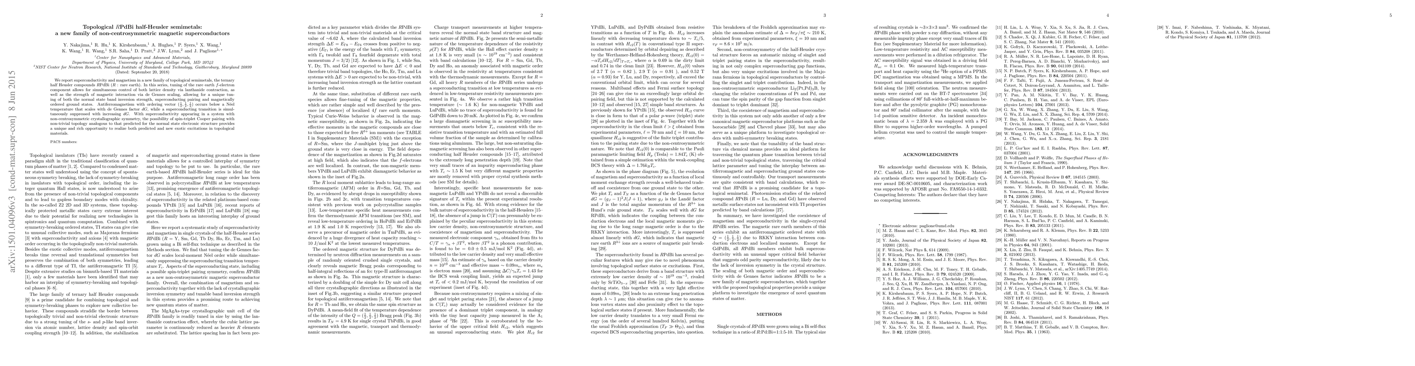 This paper reports the discovery of superconductivity and magnetism in a new class of topological semimetals, R PdBi (where R is a rare earth element), showcasing unique control over superconducting pairing and magnetic interactions through tuning of the rare earth component. The study highlights the potential for realizing spin-triplet Cooper pairing in non-centrosymmetric crystal structures, offering a platform for exotic topological excitations.