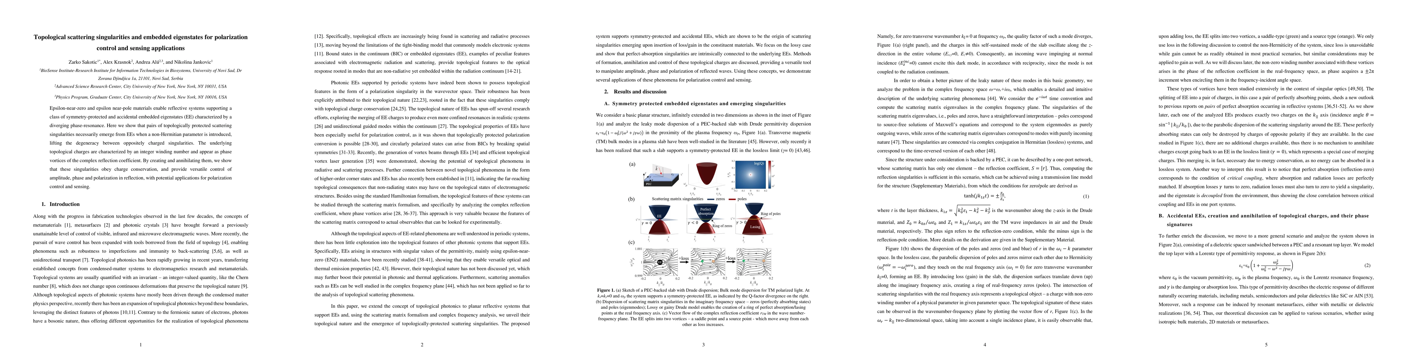 Researchers discover that epsilon-near-zero materials create pairs of topologically protected scattering singularities when a non-Hermitian parameter is introduced, enabling precise control over reflection amplitude, phase, and polarization.