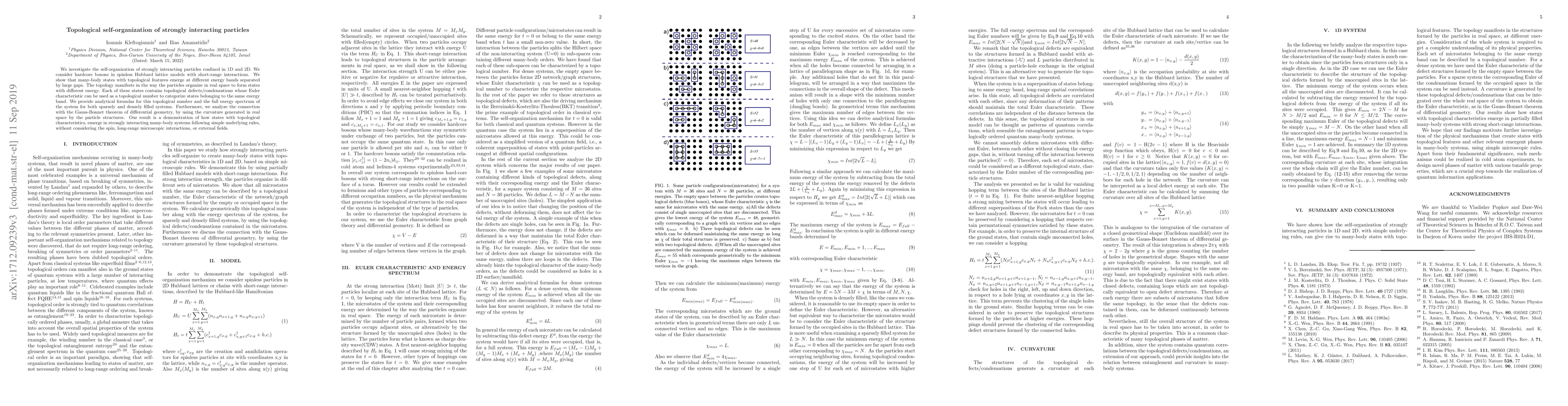 Researchers discovered topological self-organization in strongly interacting particles confined to 1D and 2D systems, leading to distinct energy bands with topological defects.
