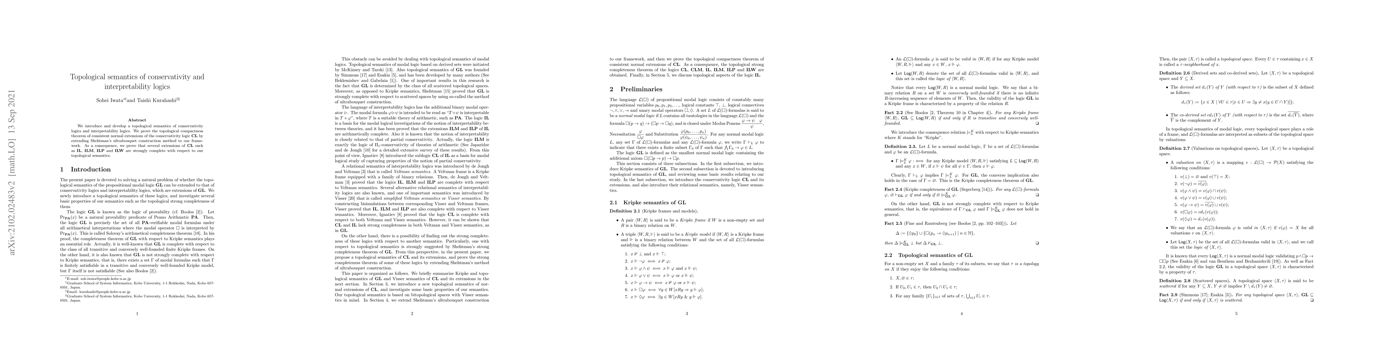 This paper develops a topological semantics for conservativity and interpretability logics, proving the topological compactness theorem for consistent extensions of $\mathbf{CL}$ and demonstrating strong completeness for several extensions like $\mathbf{IL}$, $\mathbf{ILM}$, $\mathbf{ILP}$, and $\mathbf{ILW}$.