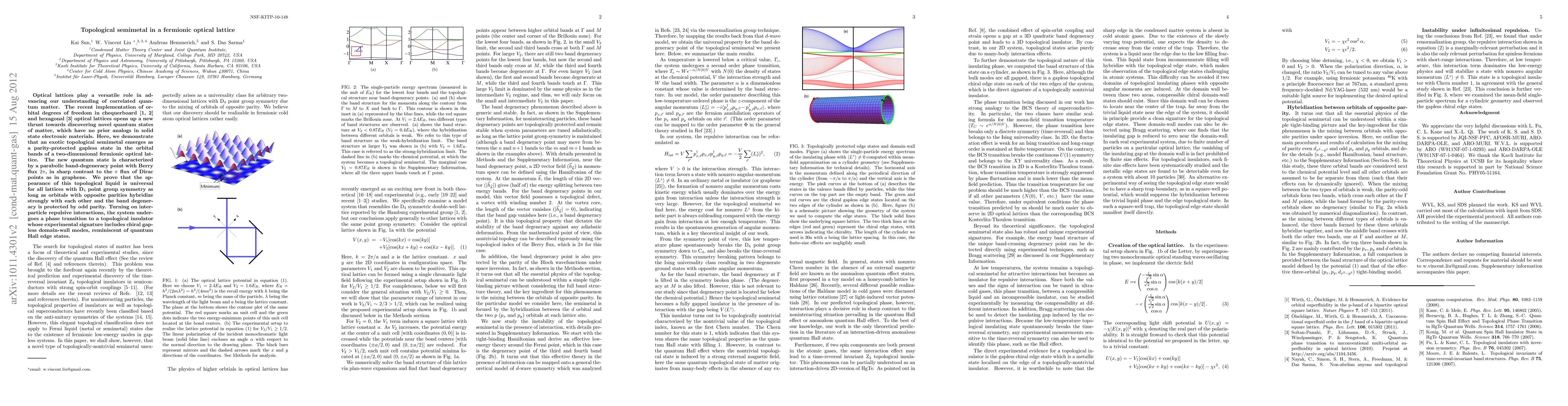 This paper demonstrates the emergence of a topological semimetal in a two-dimensional fermionic optical lattice, characterized by a unique parabolic band-degeneracy point with Berry flux $2\pi$. The study reveals that this state is universal for lattices with D$_4$ symmetry under strong hybridization of opposite-parity orbitals.