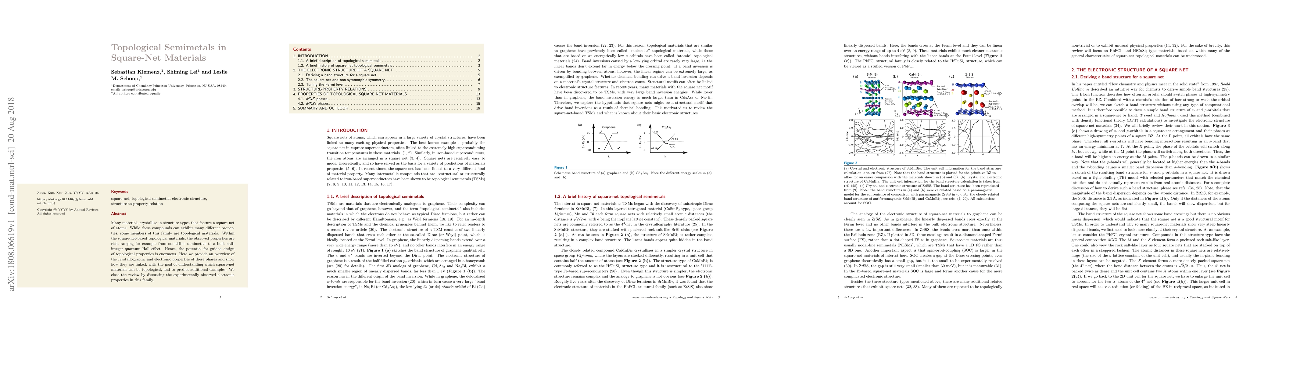 This paper reviews the topological properties of square-net materials, highlighting their diverse electronic characteristics, from nodal-line semimetals to quantum Hall effects. The study aims to understand the underlying connections between crystallographic and electronic properties to predict new topological materials.