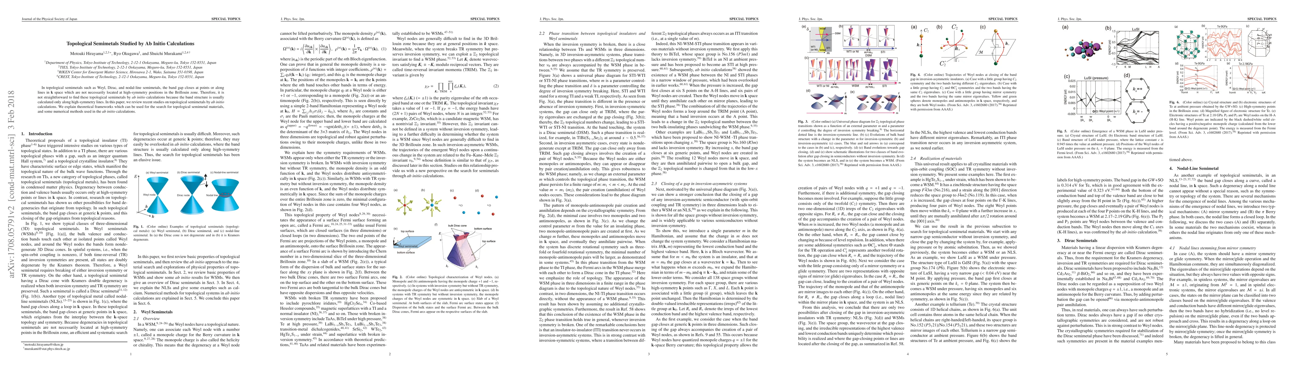 This paper reviews recent ab initio calculations identifying topological semimetals, focusing on the challenges due to band gap closures not at high-symmetry points, and discusses theoretical frameworks and numerical methods facilitating the search for such materials.