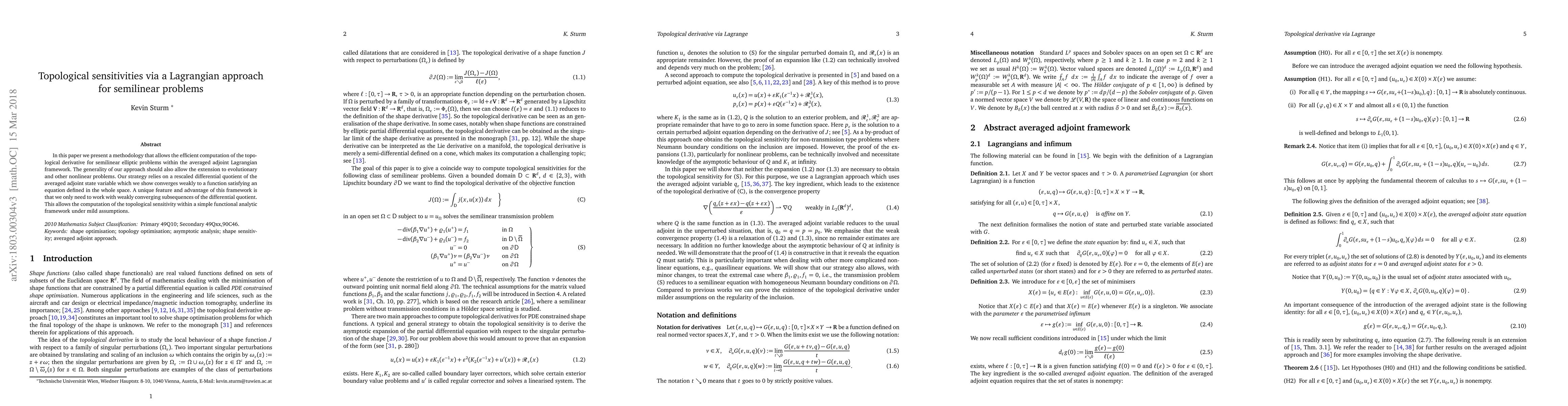 In this paper we present a methodology that allows the efficient computation of the topological derivative for semilinear elliptic problems within the averaged adjoint Lagrangian framework. The generality of our approach should also allow the extension to evolutionary problems and other nonlinear problems. Our strategy relies on a rescaled differential quotient of the averaged adjoint state variable which we show converges weakly to a function satisfying an equation defined in the whole space. A unique feature and advantage of this framework is that we only need to work with weakly converging subsequences of the differential quotient. This allows the computation of the topological sensitivity within a simple functional analytic framework under mild assumptions.