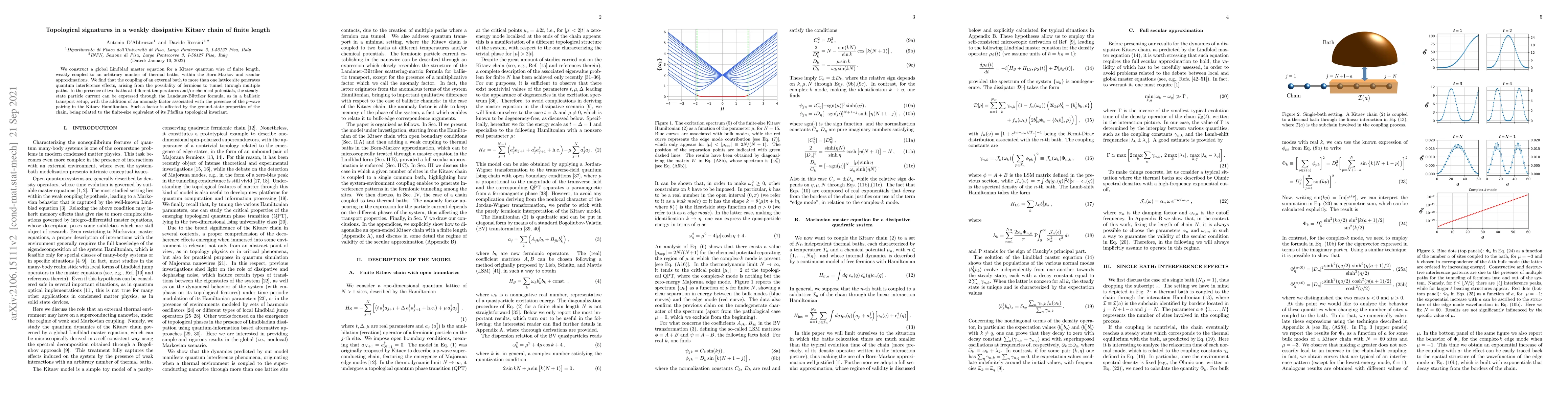 We construct a global Lindblad master equation for a Kitaev quantum wire of finite length, weakly coupled to an arbitrary number of thermal baths, within the Born-Markov and secular approximations. We find that the coupling of an external bath to more than one lattice site generates quantum interference effects, arising from the possibility of fermions to tunnel through multiple paths. In the presence of two baths at different temperatures and/or chemical potentials, the steady-state particle current can be expressed through the Landauer-B\"uttiker formula, as in a ballistic transport setup, with the addition of an anomaly factor associated with the presence of the $p$-wave pairing in the Kitaev Hamiltonian. Such a factor is affected by the ground-state properties of the chain, being related to the finite-size equivalent of its Pfaffian topological invariant.