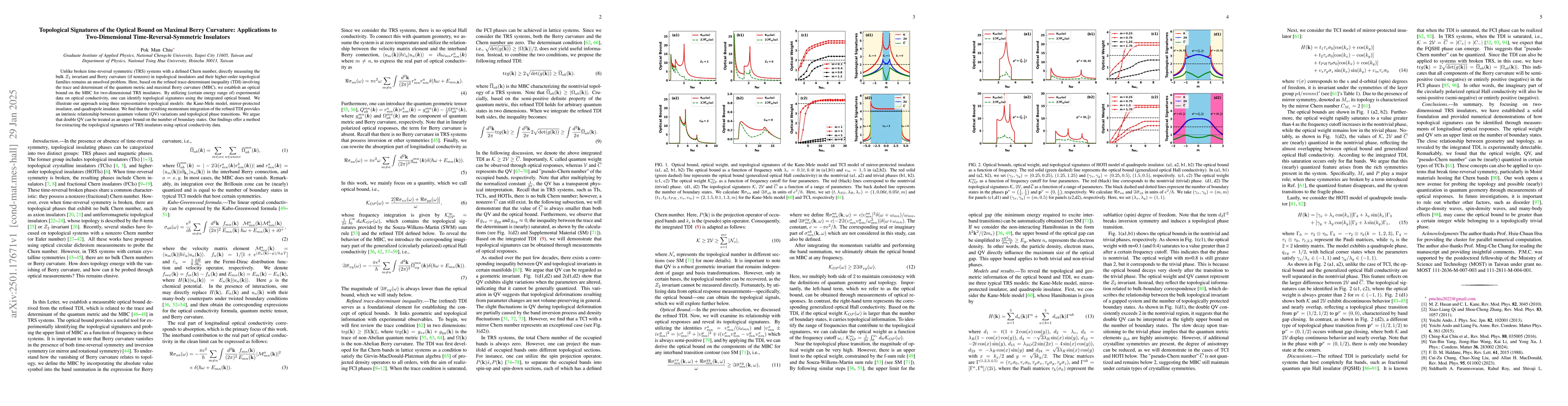 The paper introduces a refined TDI involving quantum metric and MBC, leading to an optical bound applicable to TRS insulators, and demonstrates its utility through three representative topological models.