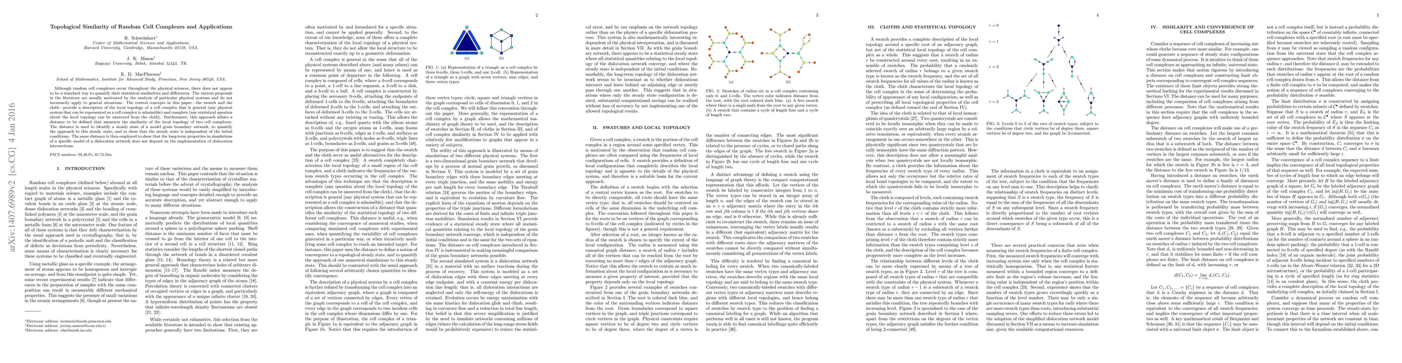 Researchers developed a method to quantify similarities between random cell complexes, using new concepts called 'swatch' and 'cloth', which provide a general and complete framework for analyzing local topology. The approach helps identify steady states in dislocation networks and rigorously quantifies their approach.
