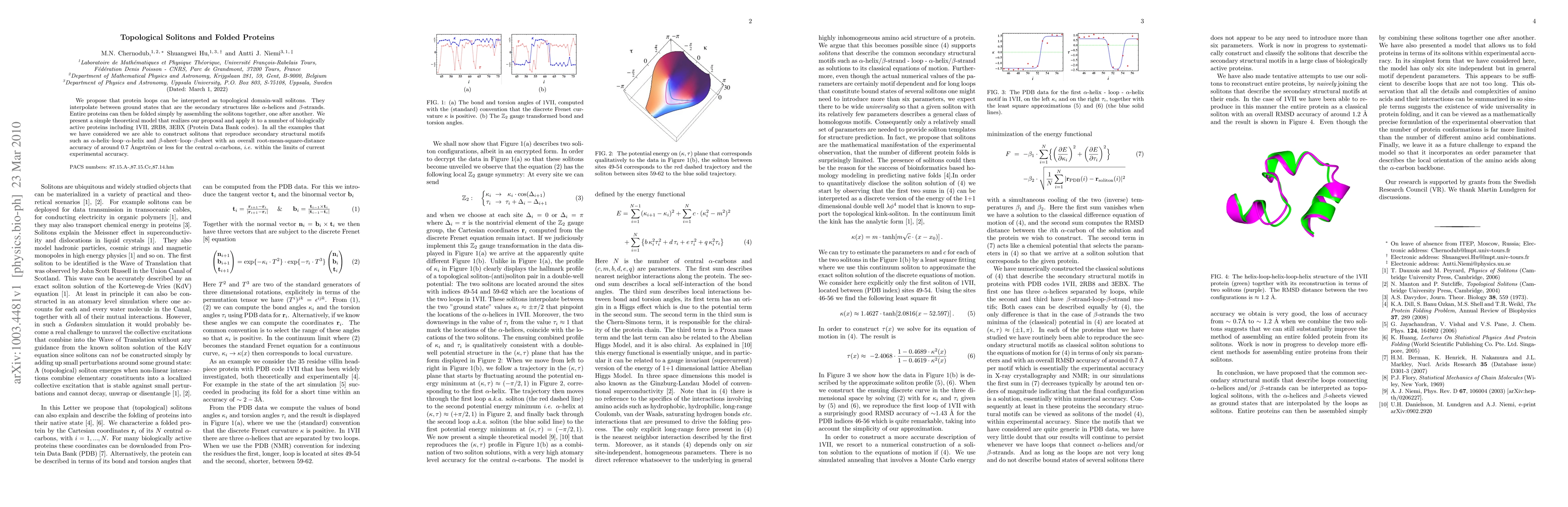 This paper proposes that protein loops function as topological solitons, interpolating between secondary structures like alpha-helices and beta-strands. The authors develop a theoretical model to assemble entire proteins by combining these solitons, demonstrating successful reconstruction of biologically active proteins with high structural accuracy.