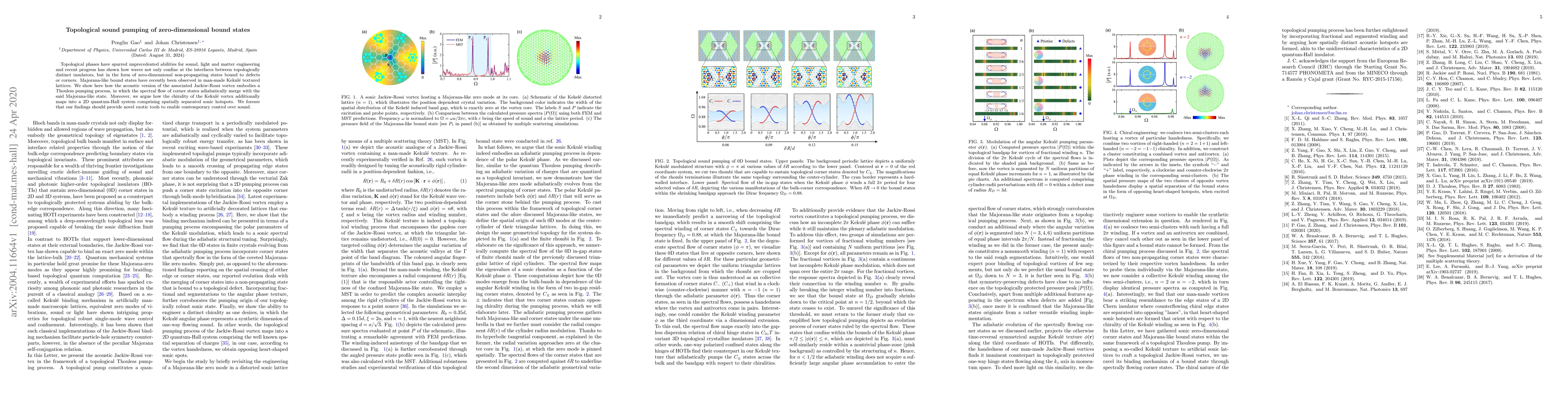 Topological phases have spurred unprecedented abilities for sound, light and matter engineering and recent progress has shown how waves not only confine at the interfaces between topologically distinct insulators, but in the form of zero-dimensional non-propagating states bound to defects or corners. Majorana-like bound states have recently been observed in man-made Kekul\'e textured lattices. We show here how the acoustic version of the associated Jackiw-Rossi vortex embodies a Thouless pumping process, in which the spectral flow of corner states adiabatically merge with the said Majorana-like state. Moreover, we argue how the chirality of the Kekul\'e vortex additionally maps into a 2D quantum-Hall system comprising spatially separated sonic hotspots. We foresee that our findings should provide novel exotic tools to enable contemporary control over sound.