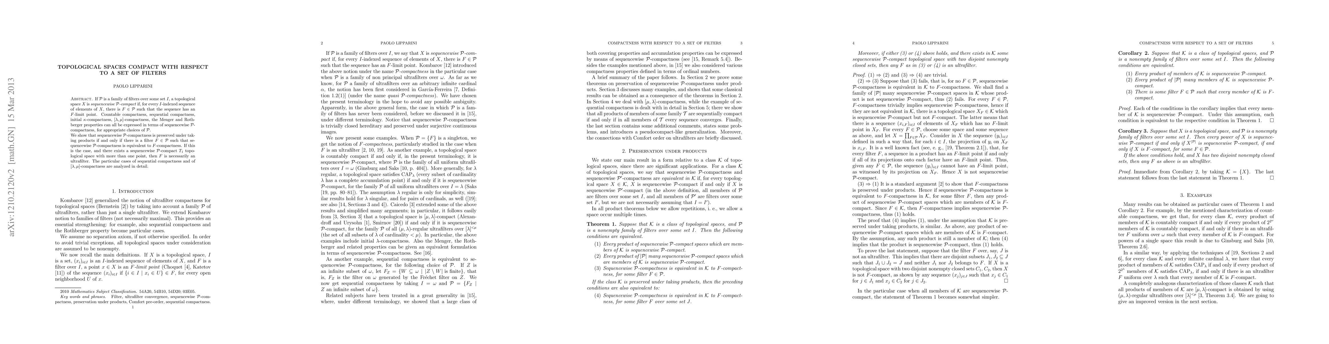 A topological space is compact with respect to a set of filters if every sequence has a limit point within that filter; this property is preserved under product spaces if and only if there is an ultrafilter in the set.