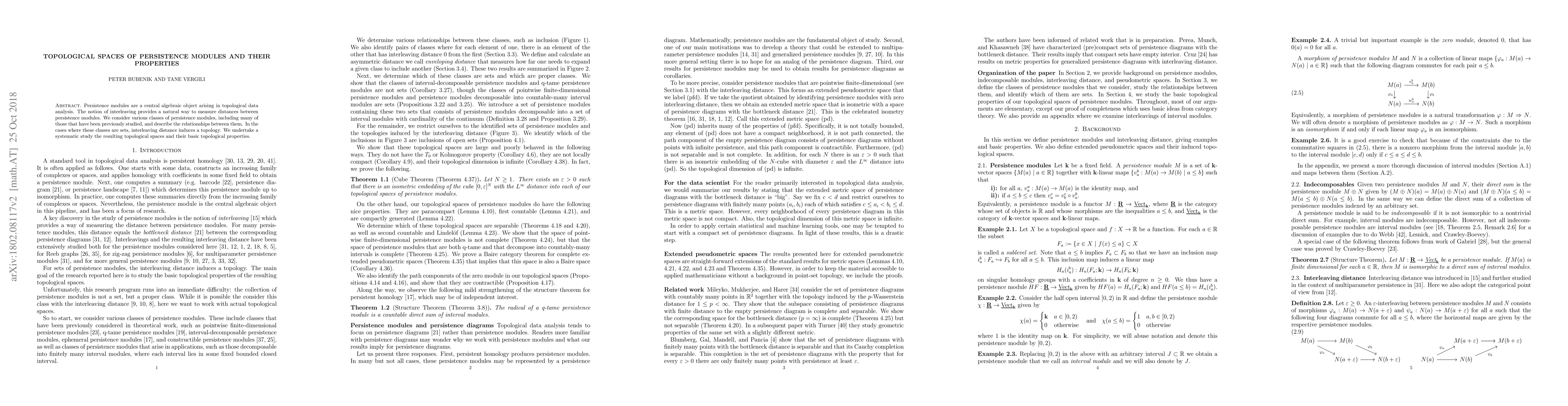 This research contributes to the foundational understanding of topological data analysis by characterizing the topological spaces of persistence modules, which is crucial for stability and robustness in persistent homology methods.