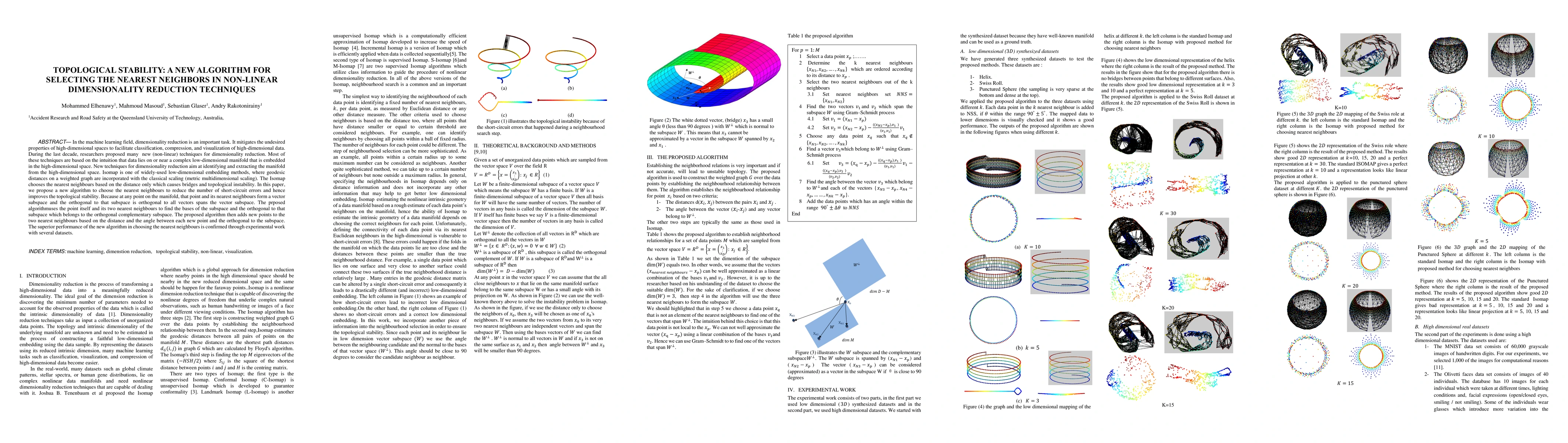 A new algorithm is proposed to select nearest neighbors in non-linear dimensionality reduction techniques, improving topological stability by incorporating point and neighbor distances.