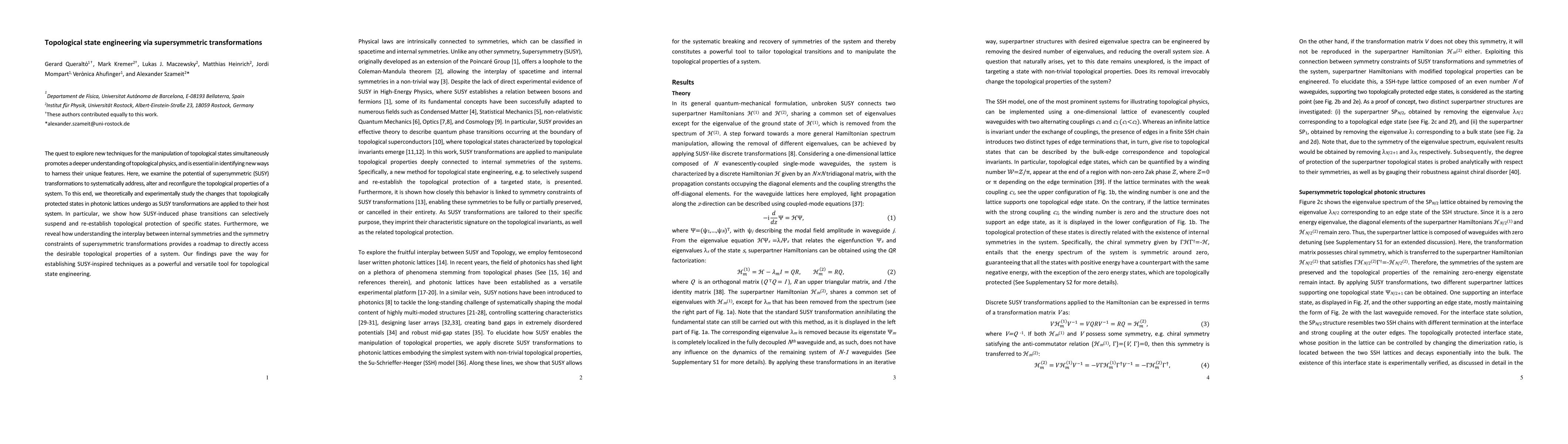 This paper explores the use of supersymmetric transformations to manipulate and reconfigure topological properties in photonic lattices. It demonstrates how these transformations can induce phase transitions that selectively suspend and re-establish topological protection, offering a new method for topological state engineering.