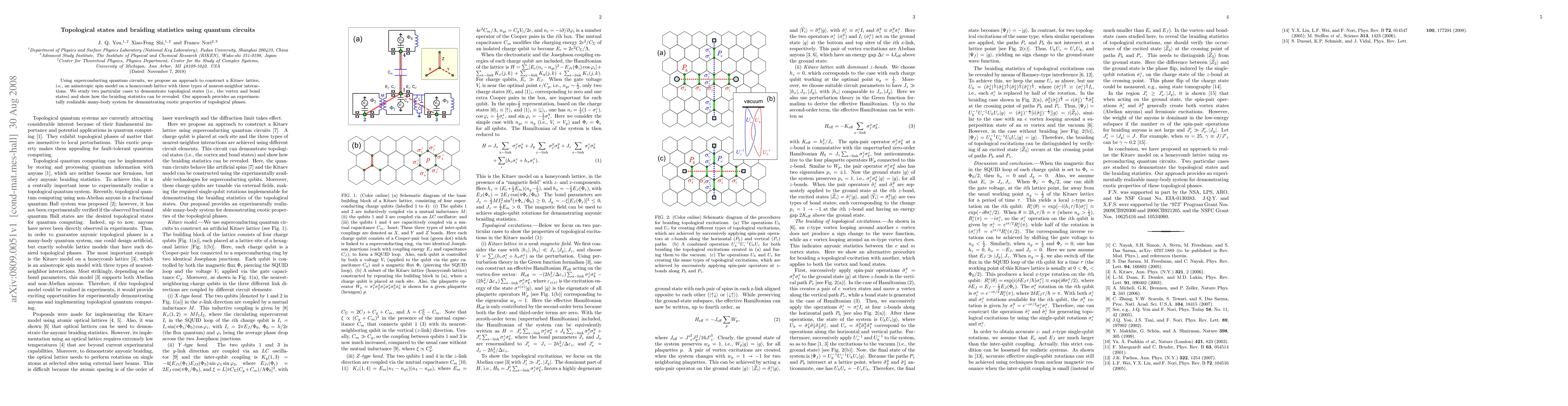 This paper proposes a method using superconducting quantum circuits to construct a Kitaev lattice, demonstrating topological states and braiding statistics through specific cases. It offers an experimentally feasible platform for showcasing the unique properties of topological phases.