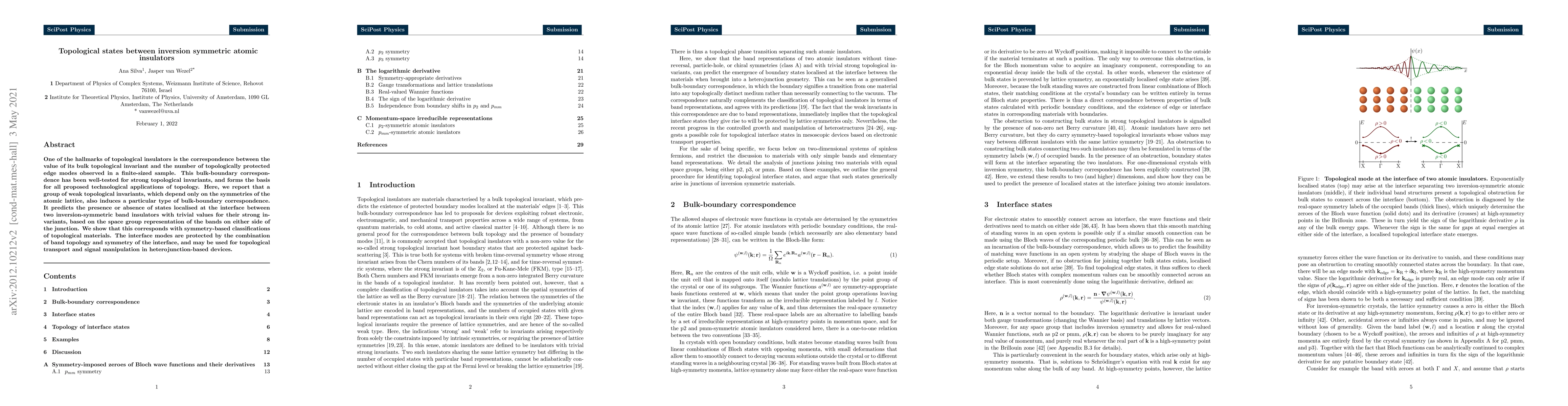 This paper explores weak topological invariants that arise from lattice symmetries, predicting interface states between two inversion-symmetric insulators. These interface modes, protected by both band topology and symmetry, could enable novel topological transport applications in heterojunction devices.