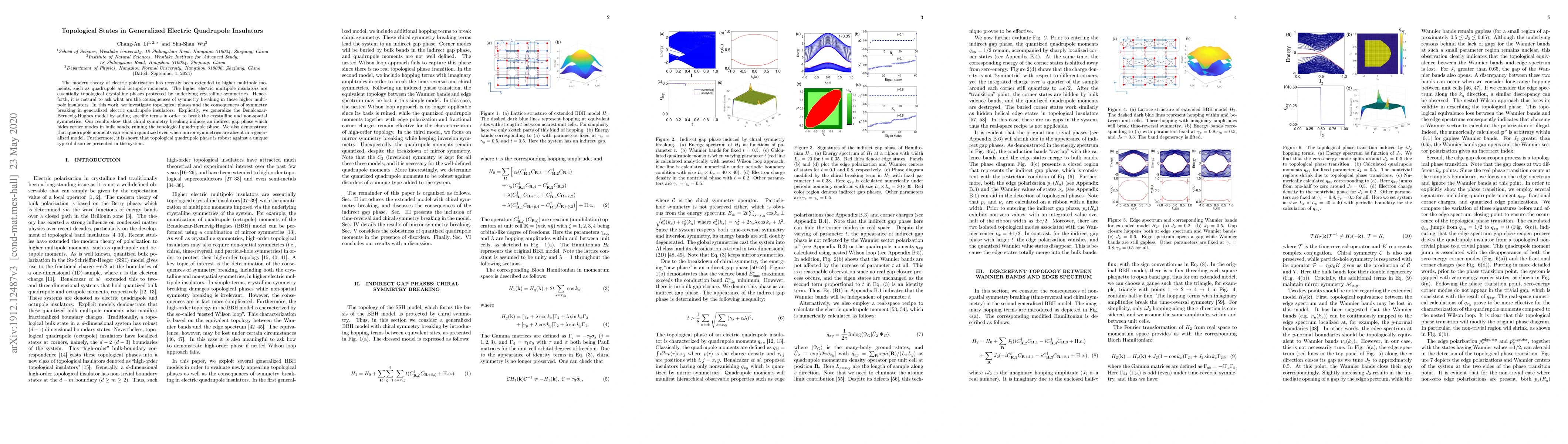 This paper investigates topological phases in generalized electric quadrupole insulators, extending the Benalcazar-Bernevig-Hughes model. It finds that breaking chiral symmetry leads to an indirect gap phase hiding corner modes, while quadrupole moments remain quantized even without mirror symmetries and the topological phase is robust against specific disorder types.