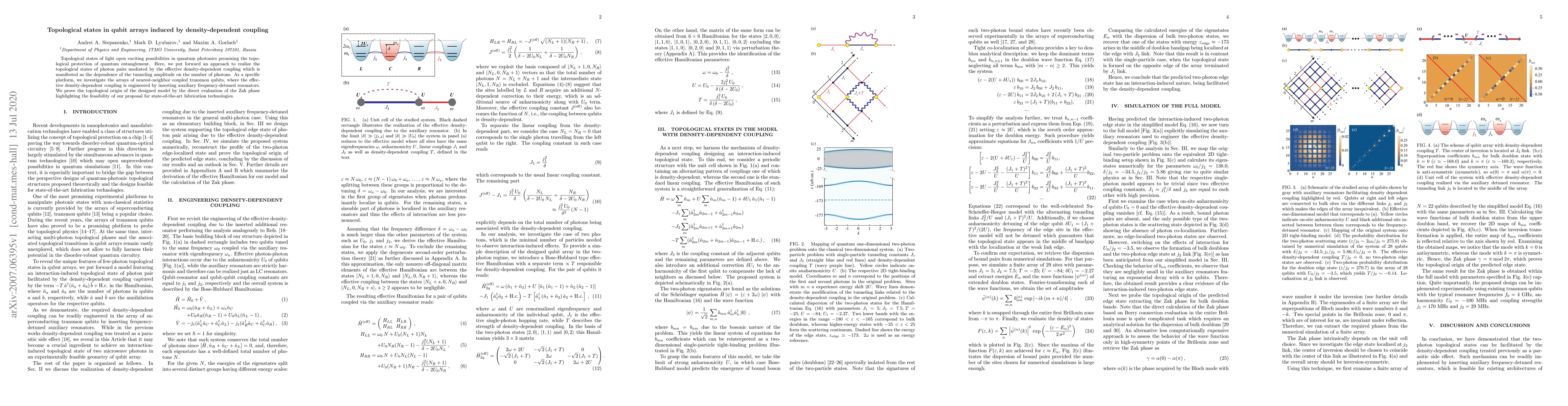 Topological states of light open exciting possibilities in quantum photonics promising the topological protection of quantum entanglement. Here, we put forward an approach to realize the topological states of photon pairs mediated by the effective density-dependent coupling which is manifested as the dependence of the tunneling amplitude on the number of photons. As a specific platform, we investigate the arrays of nearest-neighbor coupled transmon qubits, where the effective density-dependent coupling is engineered by inserting auxiliary frequency-detuned resonators. We prove the topological origin of the designed model by the direct evaluation of the Zak phase highlighting the feasibility of our proposal for state-of-the-art fabrication technologies.