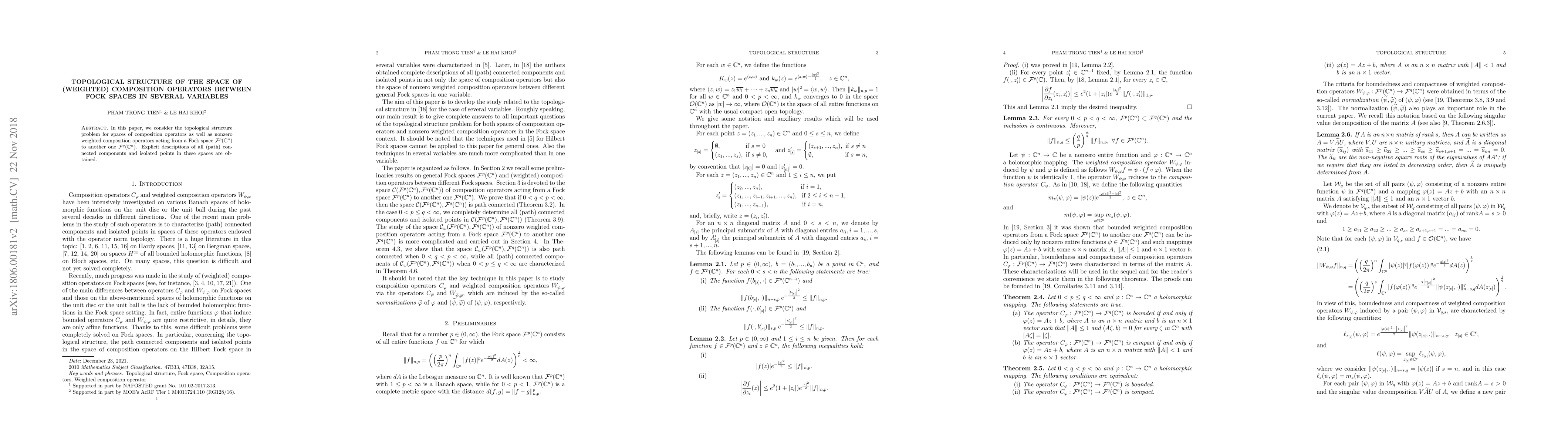 This paper describes the topological structure of spaces of composition operators between Fock spaces in several variables, providing explicit descriptions of path-connected components and isolated points.