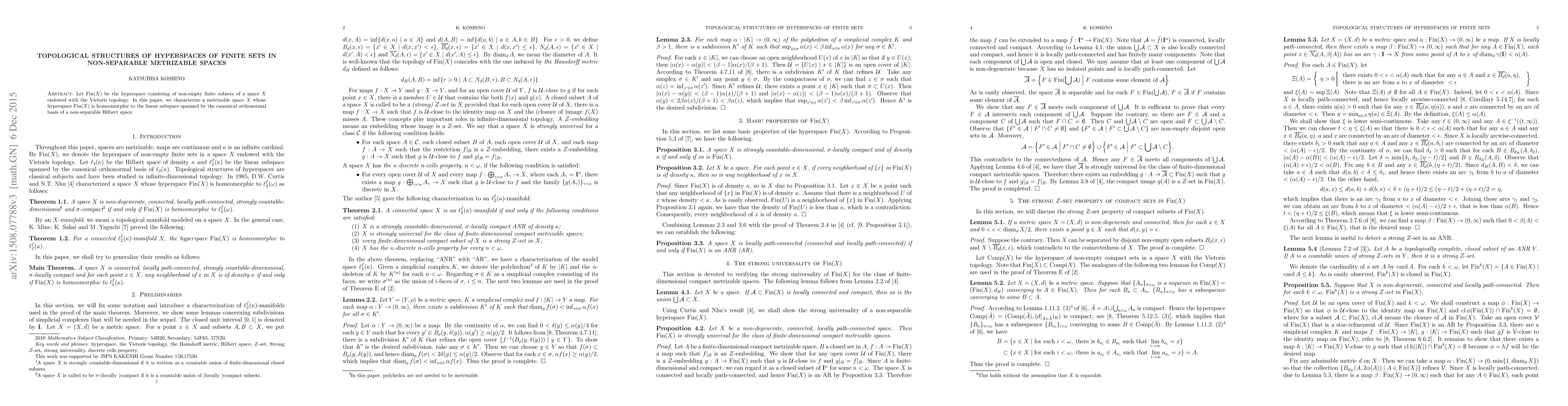 This paper characterizes metrizable spaces $X$ where the hyperspace ${\rm Fin}(X)$ of non-empty finite subsets, equipped with the Vietoris topology, is homeomorphic to a linear subspace of a non-separable Hilbert space. The focus is on topological structures in non-separable metrizable spaces.