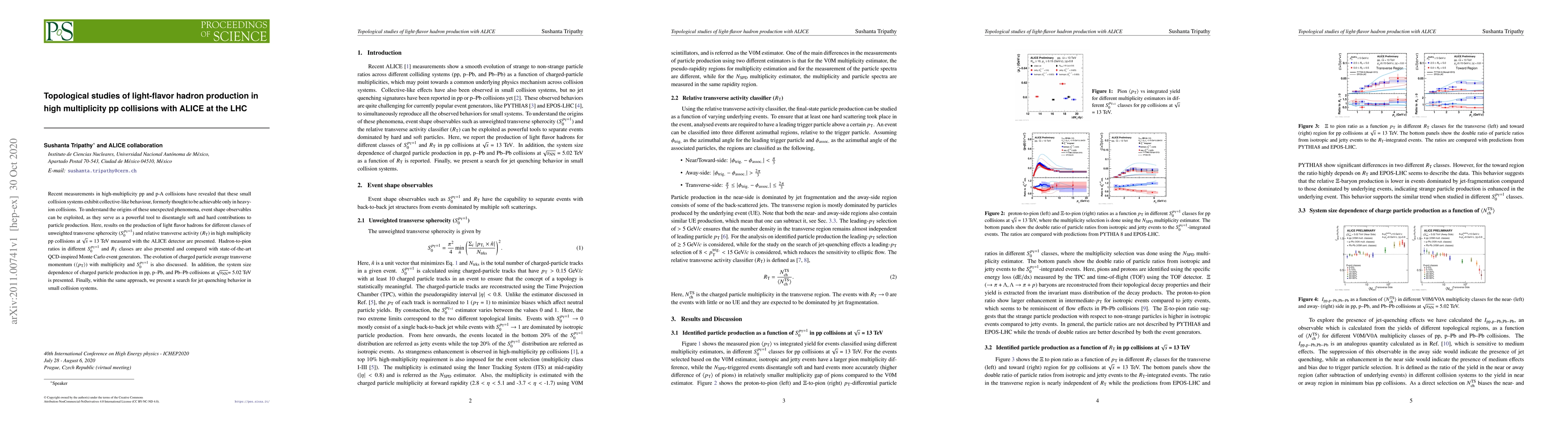This paper investigates the collective-like behavior in high-multiplicity proton-proton collisions using ALICE at the LHC, focusing on light-flavor hadron production through event shape observables. Results show differences in hadron-to-pion ratios and average transverse momentum across various transverse spherocity and activity classes, compared with QCD models, and explore the system size dependence across different collision types.